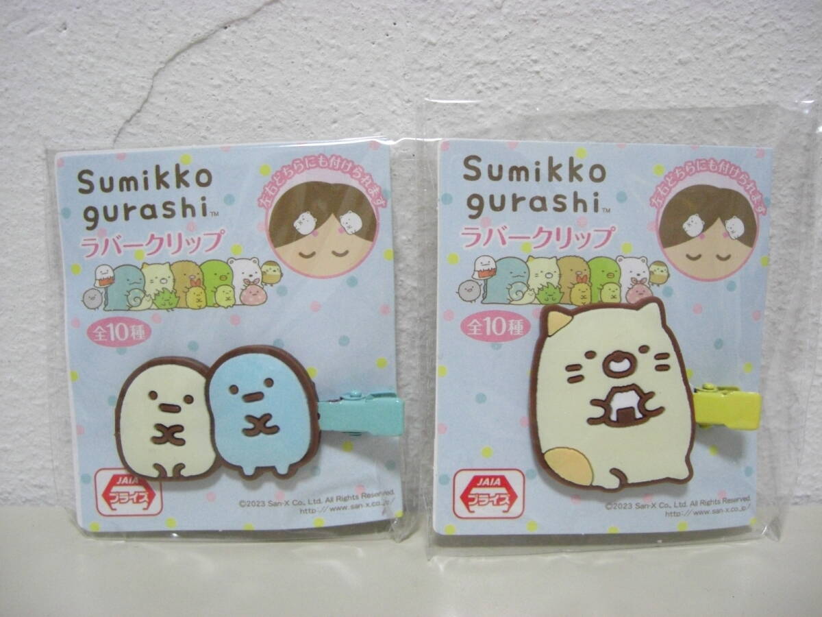 【新品・未開封】『すみっコぐらし』ラバークリップ/たぴおか・ねこの2種セットです。