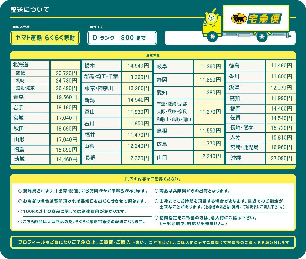 ◇こちらの商品は【らくらく家財Dサイズ×1】合計1個口で発送予定です。料金は添付の送料表をご参照ください。
