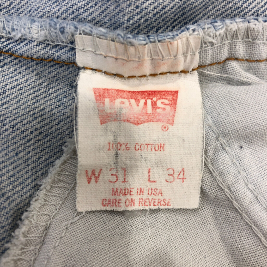 | [商品管理番号] Q7237 [ブランド] Levi's/リーバイス [サイズ] W31 L34 [実寸サイズ] ウエスト:約74cm 股上:約32cm 股下:約81cm わたり幅:約29cm 裾幅:約18cm [主な素材] 表地 : コットン [色] ライトブルー [仕様] 生産国 : USA製 90年代 505 [状態] 汚れ:全体 キズ:裾 特記事項:使用感あり、色褪せ | |||