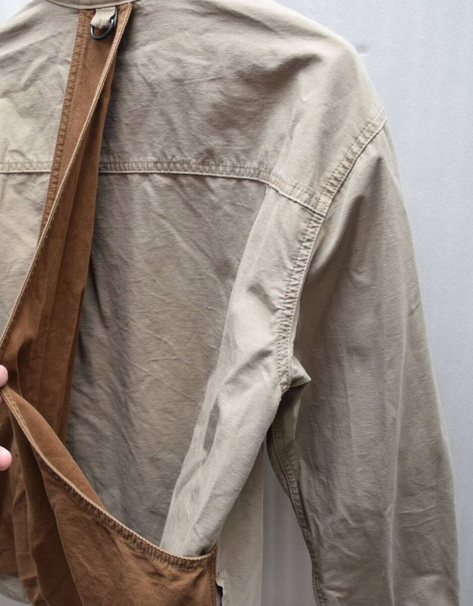 バックにはハンティングジャケットでよく見られる、大きなゲームポケット が配され、
