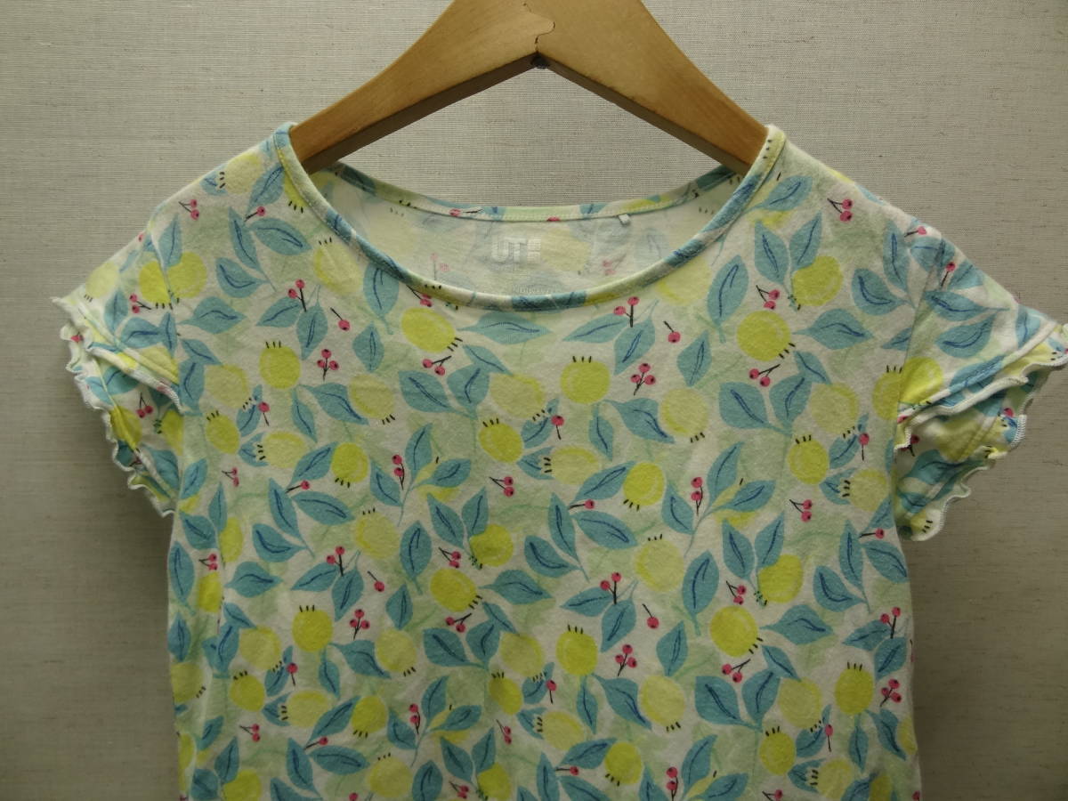 全国送料無料 スカンジナビア パターン コレクション UT ユニクロ 子供服キッズ女の子 キャップスリーブ半袖 レモン?プリント Tシャツ 140
