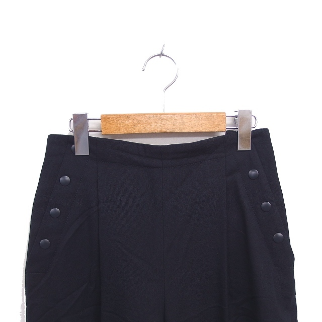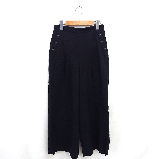 トゥモローランド TOMORROWLAND ワイド パンツ ロング サイドボタン ウール混 34 黒 ブラック /TT レディース