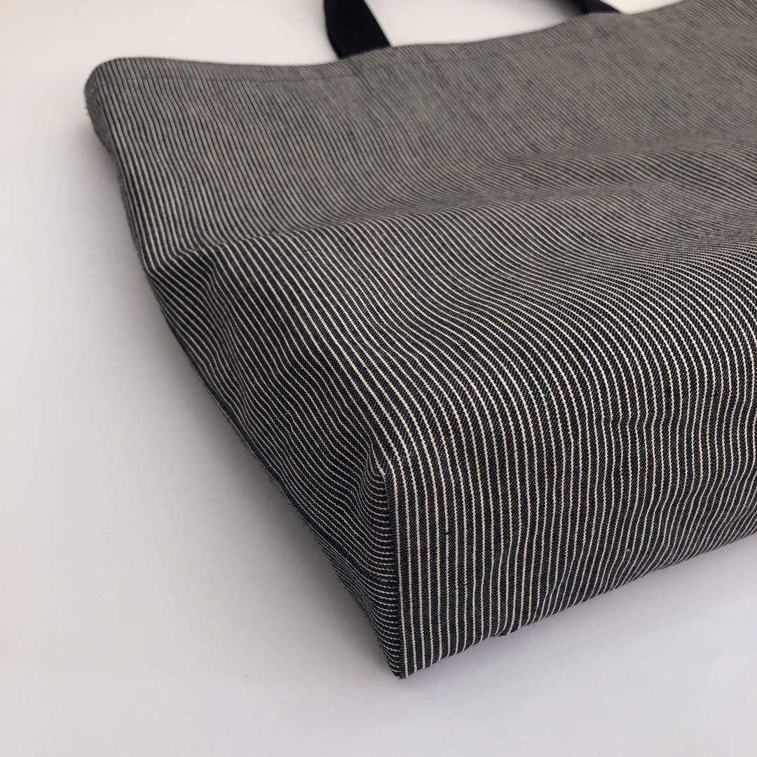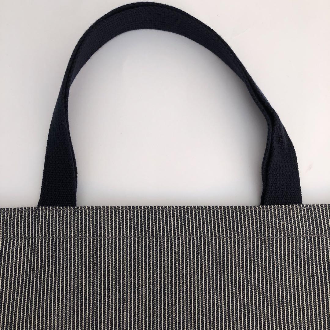 薄手のヒッコリーデニムで縫ったとてもシンプルなレッスンバックです。
