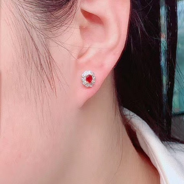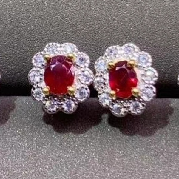 100% 天然ルビースタッドピアス、シルバー 925、宝石ピアス、日常着、ガールフレンドのためのギフト