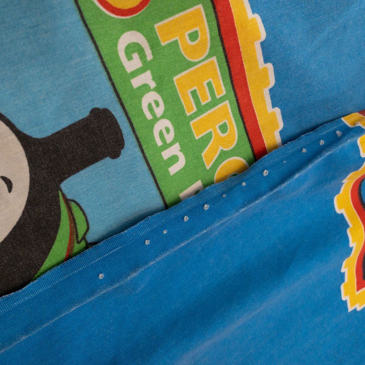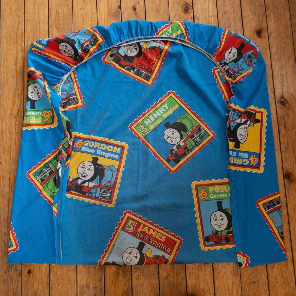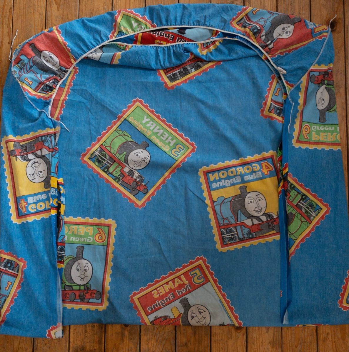 アメリカで購入したセカンドハンド(古着)の、 機関車トーマスのベッドシーツです。