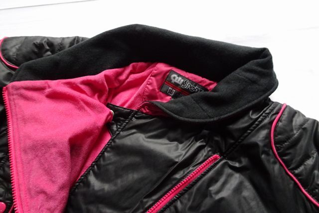 GOLD WIN SPORT/中綿入ジャンパー/ブルゾン/アウター/前ジップアップ/当て布/ピンクパイピング/黒/ブラック/Lサイズ(3/28R7)