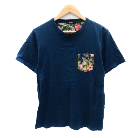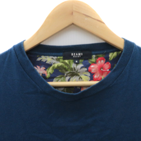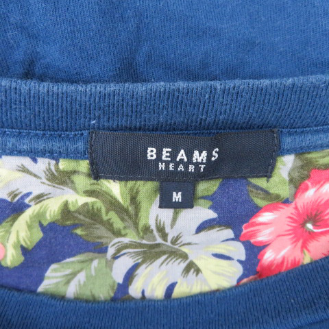 ビームスハート BEAMS HEART Tシャツ カットソー 半袖 ハイビスカス柄 M マルチカラー 紺 ネイビー /YK29 メンズ
