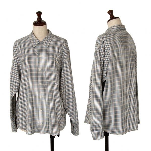 マドモアゼルノンノンMademoiselle NON NON コットンチェックシャツ 白グレーM位 |