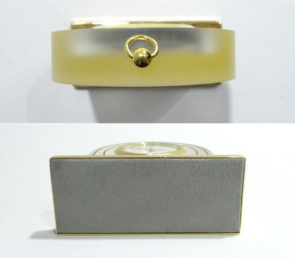 現在電池が入っておりませんので落札者様で電池を購入して頂き入れて頂く形となります。 レターパックプラスでの発送可能ですが、かんたん決済で精算される場合はご連絡いただくか送料を変更してお支払い下さいます様よろしくお願いいたします。素材:金属製。高さ8.5cm×横7cm×奥行き3cm。動いていますが、時間の誤差は測っていません。