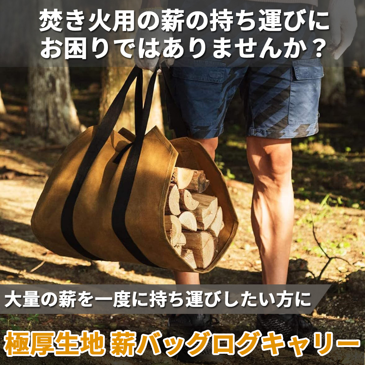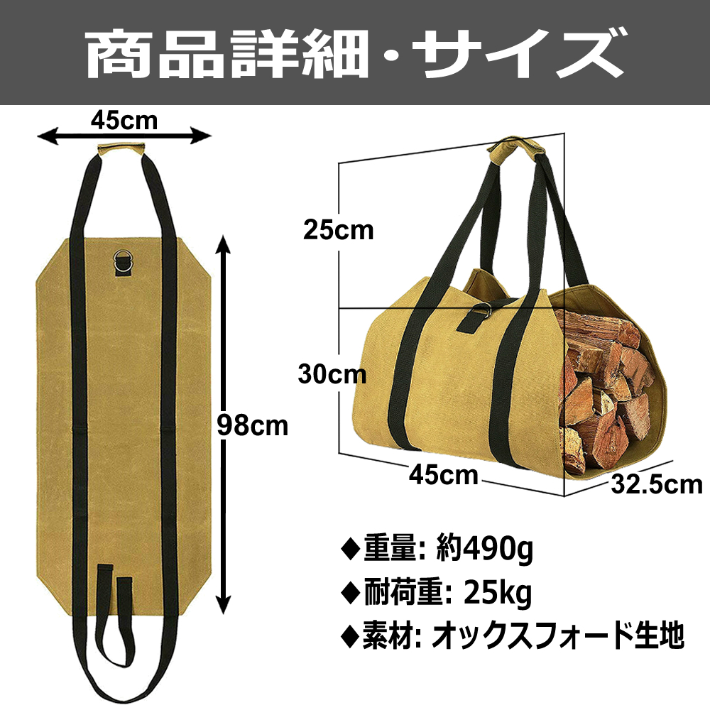 薪バッグ ログキャリー 薪ケース トート 軽量 持ち運び ハンドル付き キャンプ