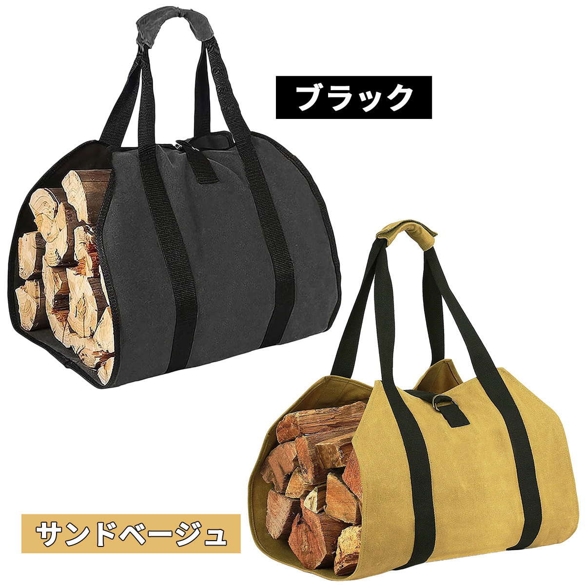 薪バッグ ログキャリー 薪ケース トート 薪キャリーバッグ サンドベージュ 軽量 持ち運び 焚き火 ハンドル付き 肩掛け キャンプ アウトドア