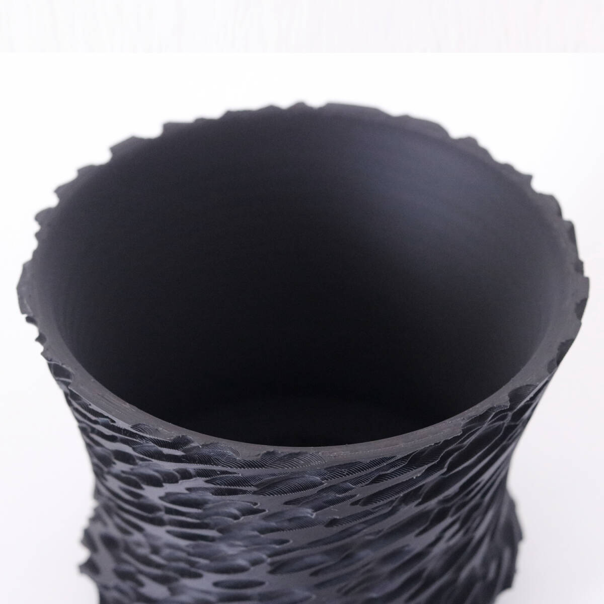 立体的な凹凸面は光が当たるたび表情を変え見飽きないフォルム