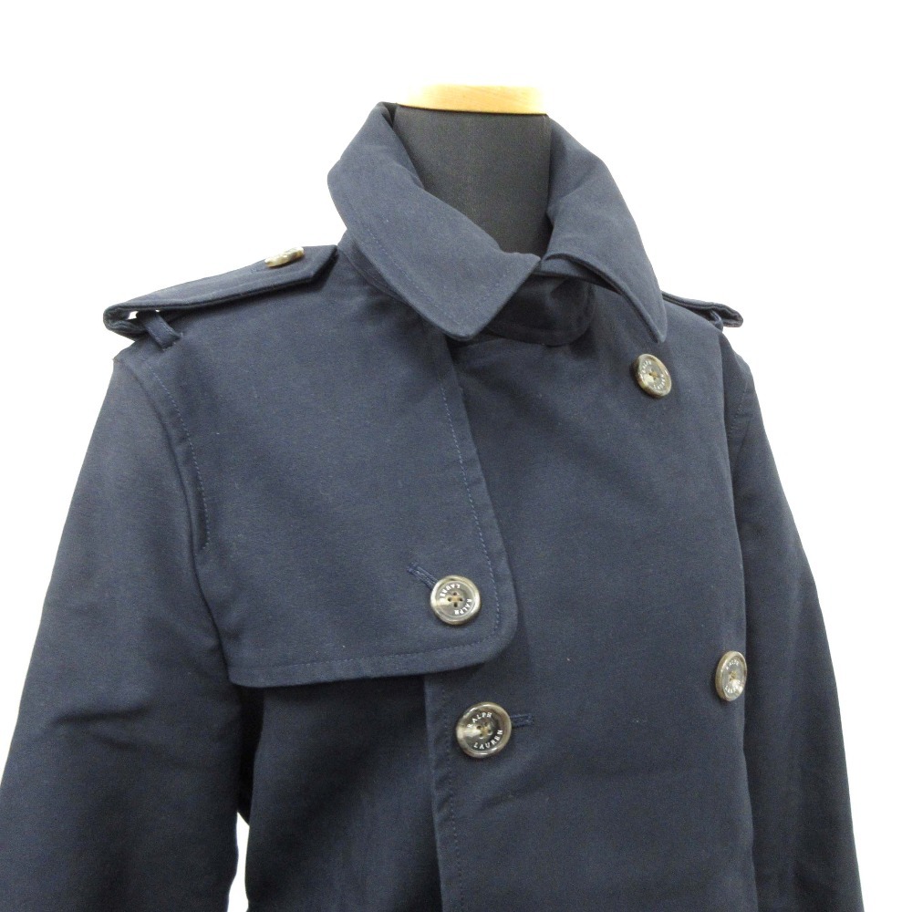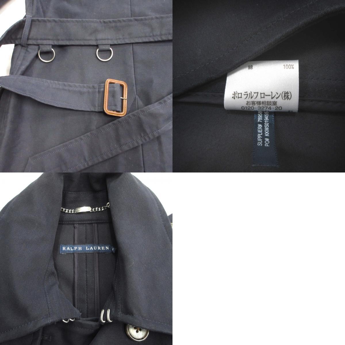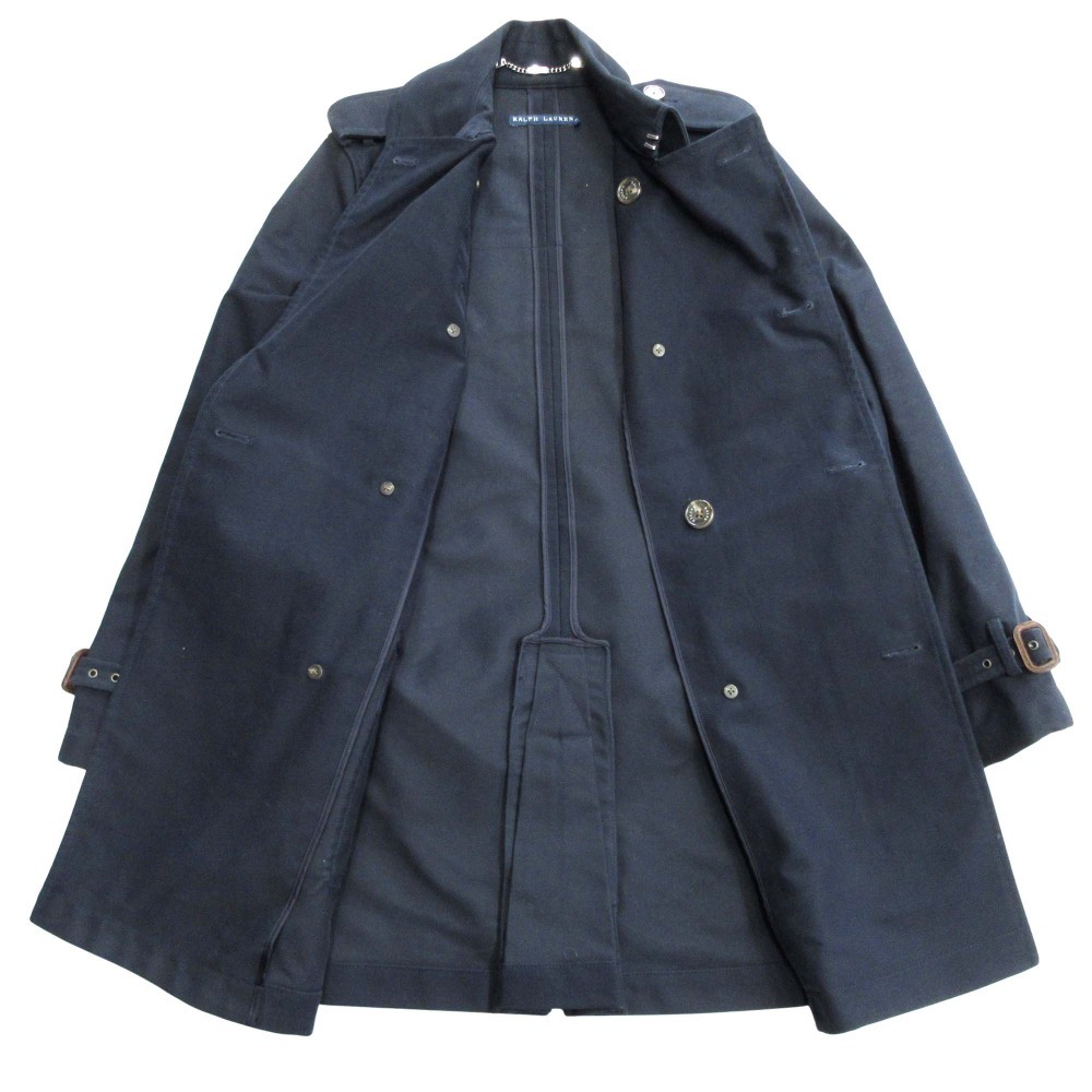 良品 RALPH LAUREN ラルフローレン トレンチコート ジャケット スプリング ロング スロートラッチ Dリング 6 ネイビー 紺