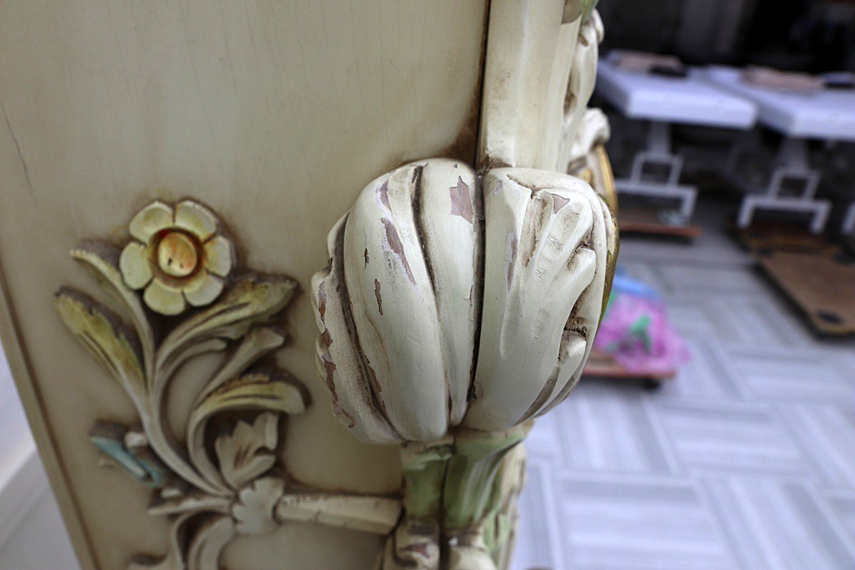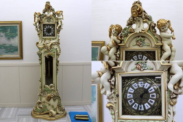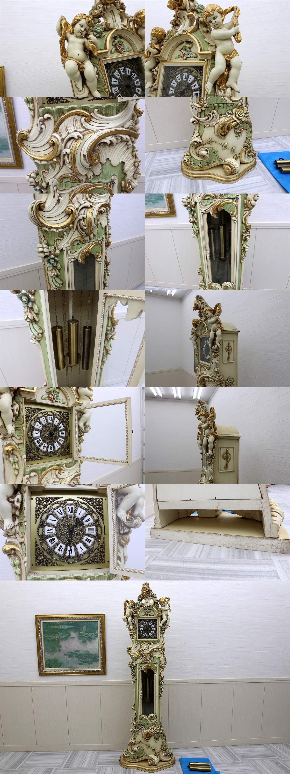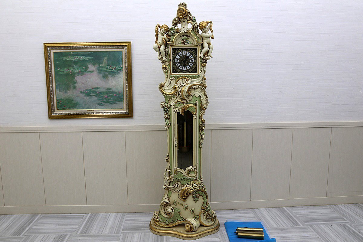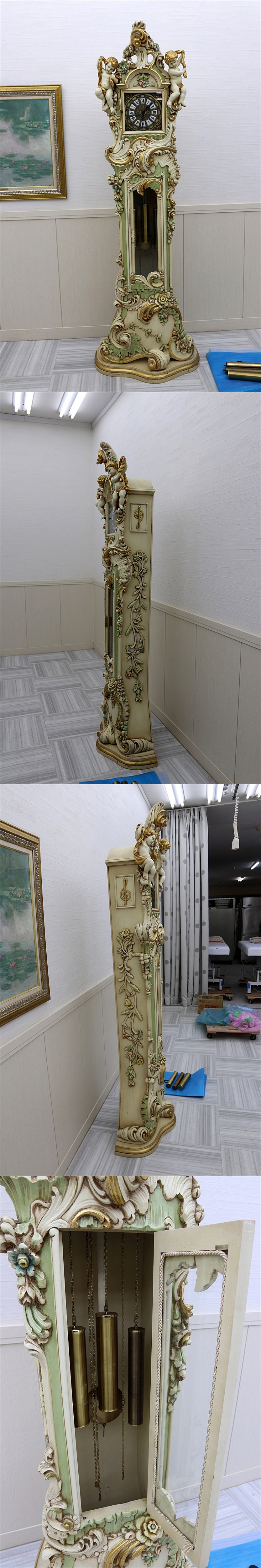 | ★ご覧いただき誠にありがとうございます★ ◆マリオ・コルチャゴ(Mario Colciago) マリオ・コルチャゴ(現在はフラテッリ・オリッジに名称変更)は、シリックと並びロココ調家具、エレガンス家具、姫家具分野では圧倒的人気を誇るブランドです。シリックよりもはるかに歴史が長く200年以上にもわたって存続しています。プロの家具職人たちの手による、オールハンドメイドの家具は大使館や王室に用いられることも多く、イタリアらしいエレガントさと高い品質により、世界中のセレブから絶大な支持を得ているイタリアの最高級家具ブランドです。 ◆イタリアが誇るクラシック家具の最高峰Mario Colciag(マリオ・コルチャゴ)による、ドイツ製HERMLE(ヘルムレ社)のムーブメントを使用したホールクロックの出品です。 優美な手掘り彫刻が魅力的な逸品!熟練の職人により生み出される彫刻は格調高い荘重な雰囲気を演出します。 ワンランク上の玄関ホールやリビングに、本格派ヨーロッピアンクラシズムの高級感溢れる立派なホールクロックを、是非、この機会にどうぞご検討下さい! ◆商品状態 アンティーク家具としての状態は良好ですが、経年による塗装の剥がれひび割れ等、確認できます。 元々コルチャゴはクラシックファニチャーですので違和感はございませが、新しいお品をお求めの方はご注意下さい。経年の使用感、塗装剥げ、キズなどヴィンテージならではの風合いと考えております。 動作に関しましては、現地で問題なく動いておりましたが古いお品です。誤差等含め、メンテナンスを前提とした現状出品(保証なし)といたしますので、ご理解の程宜しくお願い致します。 デジタルでは絶対に出ないキレイな音色を奏でております。よろしければ動画→こちらからをご確認ください。 当店の商品はすべて専門スタッフがクリーニングを行っております。大変希少な、マリオ・コルチャゴ、アンティーク ホールクロックをご検討下さい! ■サイズ:約-横幅-69×奥行-34×高さ-209cm ● コンディションランク【C】 【New】 新品未開封 【SS】 在庫未使用(開封品) 【S】 中古極美品(使用が殆どなく、未使用品に近い極めてきれいな商品) 【A】 中古きれい(使用回数が少なく、大変きれいな商品) 【B】 中古ふつう(通常にある程度使用された商品) 【C】 中古使い込んでいる(キズや汚れが目立つがまだまだ使える商品) 【N】 中古難アリ(付属品の欠品が多い、または一部動作しないところがある) 【J】 ジャンク(故障している商品、部品取りなどにご利用ください) ●あとはすべて写真にてご審査願います。写真には写りきらない、よごれやダメージ、詳細部分の、記載ミスなどがもしあっても、その旨のクレームはご勘弁下さい。上記内容をご理解頂き、ノークレーム・ノーリターンでお願いいたしいます。 |