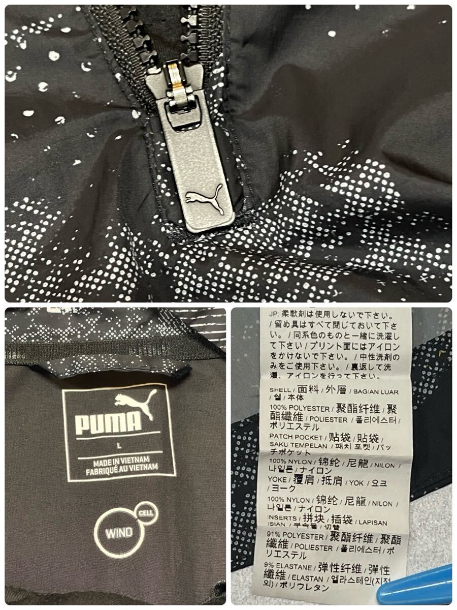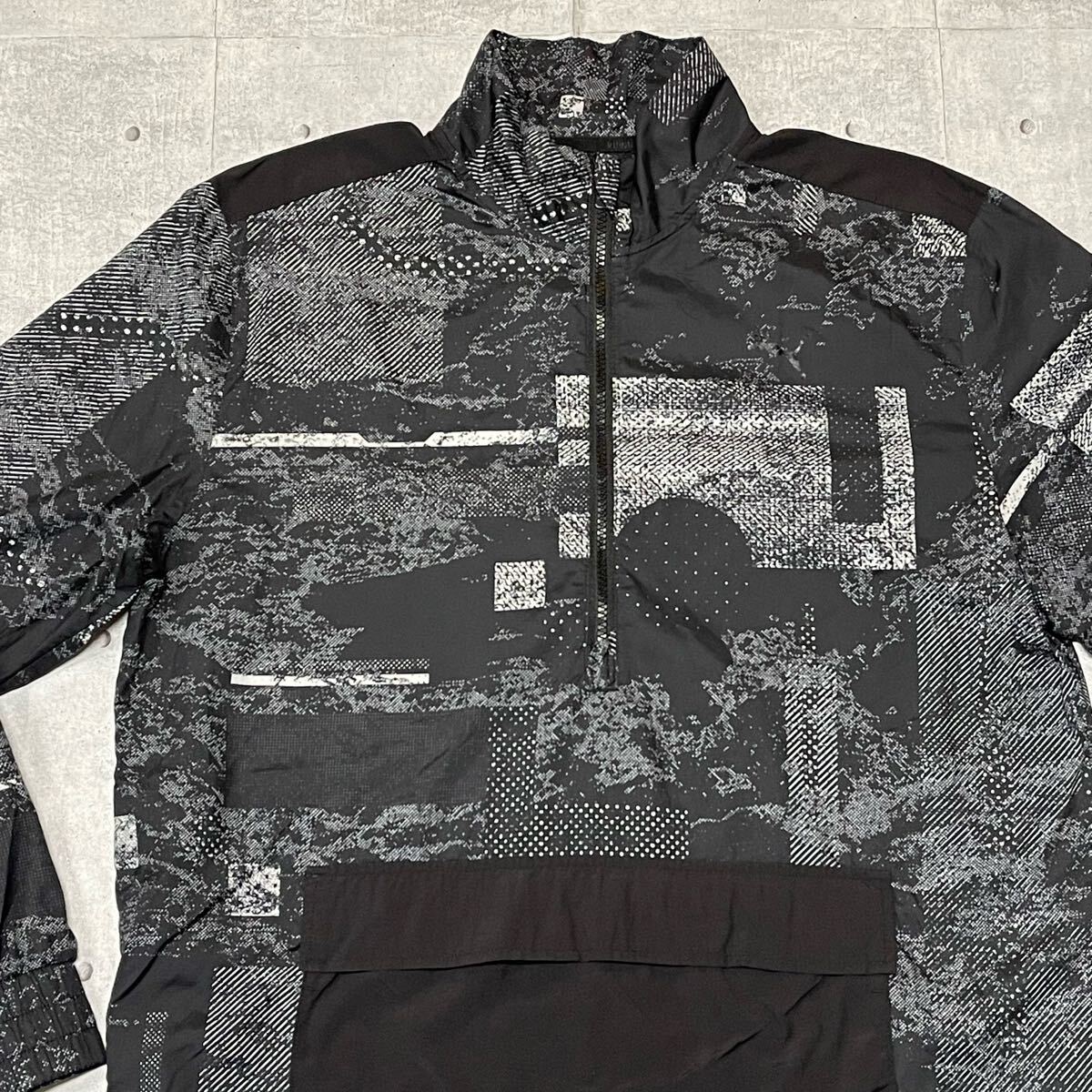 極美品 PUMA 総柄 アノラックジャケット ハーフジップ プルオーバー プーマ  ウインド エナジー ウーブンジャケット ハイデザイン YL1798 WINDCELL うすでのしっかりした上質素材 スポーツ 使用感うすい美品 ロゴジッパー ワンポイント 裾ジッパー カンガルーポケット ストリート トレーニングウインドブレーカー タウンユース