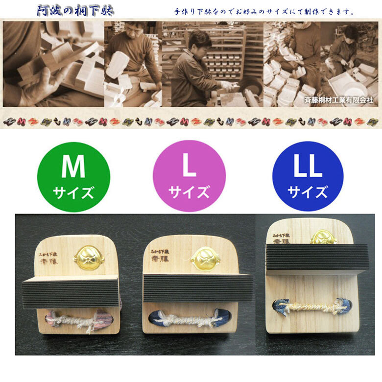 | 徳島・阿波の桐下駄、斉藤桐材工業謹製 (親子3代続く下駄工房) 古武道の鍛錬用や、サッカーの体幹訓練などバランス強化に幅広くお使いいただいています。 バランスを取りやすいよう考え設計された形 軽くて丈夫な桐下駄は、扱いやすいので、一本歯下駄初心者の方から上級者まで幅広い年代でお楽しみいただけます。 日々のトレーニング、姿勢改善、プレゼントにも最適です。 | |