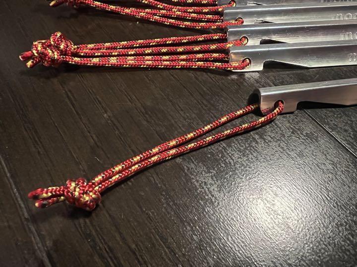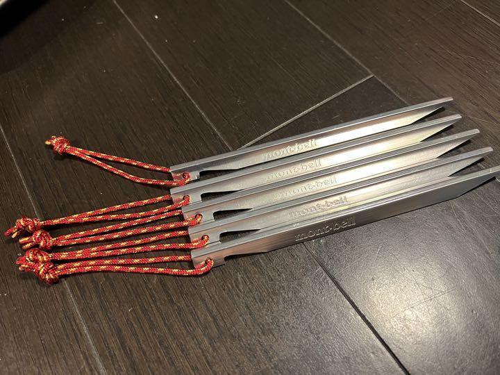 mont-bell アルミテントペグ16cm 赤ストラップ付き 5本セットの出品です。