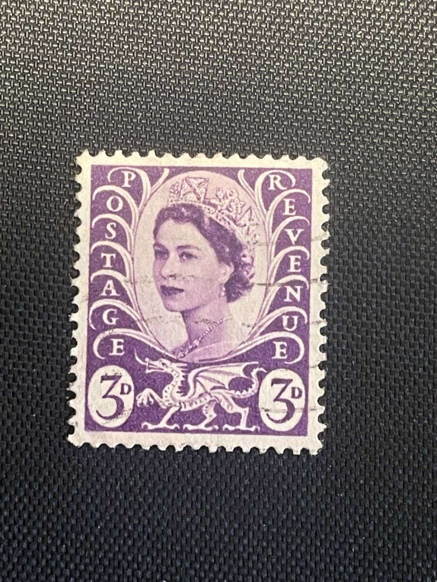 【英国】ウェールズ地方切手 3ペンス エリザベス女王 使用済(管理番号EST6115)
