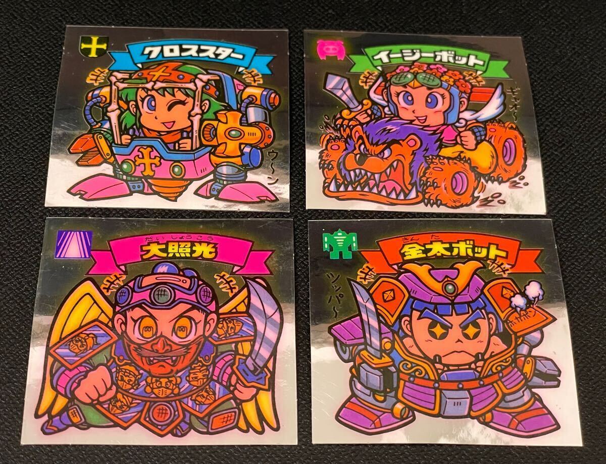 ビックリマンシールのクノススター、イージーボット、大照光、金太ボットのセットのセットです。