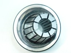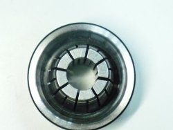 ドイツの技術協力によって作られているようです。 DIN規格品ですので、安心してお使いいただけます。 ◎振れ精度についての注意点 ERタイプのコレットは、対応幅の最大値において保証の振れ精度を発揮します。 例えば、10(10~9mm)の場合10mmにおいて保証の振れ精度を発揮しますが、 9mmに近づくほど振れ精度が悪くなってゆきます。 一般的なエンドミルにおいては問題ありませんが、ドリル使用には十分 注意が必要です。 ◎その他のテーパー(ストレート、MT2、MT4、R8、NT30、NT40、BT30、BT40) に交換する場合。 ・在庫が無い場合お取り寄せになり、最長で2週間程度お待ちいただくことが ありますので、ご落札の前に質問欄から在庫の確認をお願いいたします。 ・ご落札の際にドローバーの径を知らせください。 ・価格 MT2は ±0円 ストレート、R8、MT4、NT30、BT30は +1000円 NT40、BT40は +2000円 ※コレットを確実にホールドするためチャックにエキセントリック・リングを採用しています。 ※切削中にチャック・キャップ(黒い部分)が振れているように見えますが、 切削精度に影響するものではありません。 ◎コレットの取り付け方法
