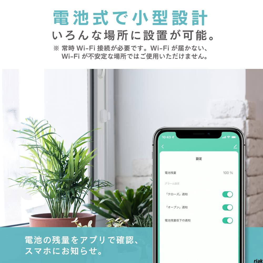 ワイヤレス&コンパクト設計で、ドアや窓はもちろん、冷蔵庫、宅配ボックス、ペットケージなどさまざまな場所に設置可能。