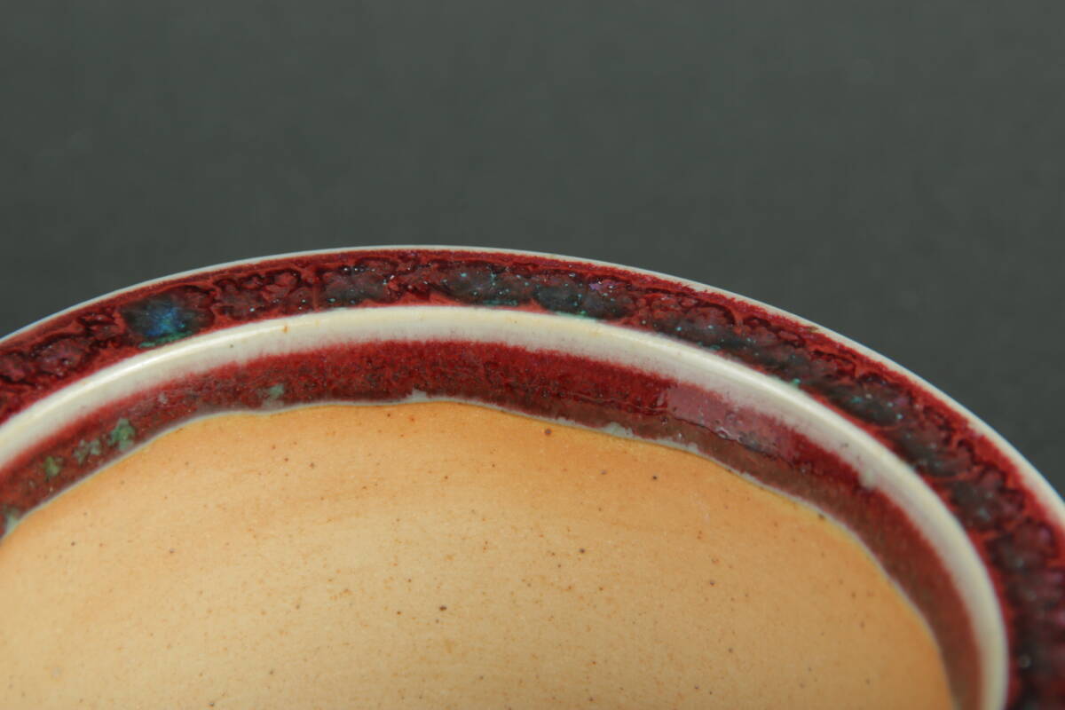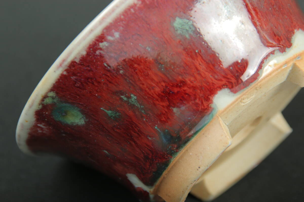 赤窯変天目 赤海鼠釉 丸反外縁下帯切足
