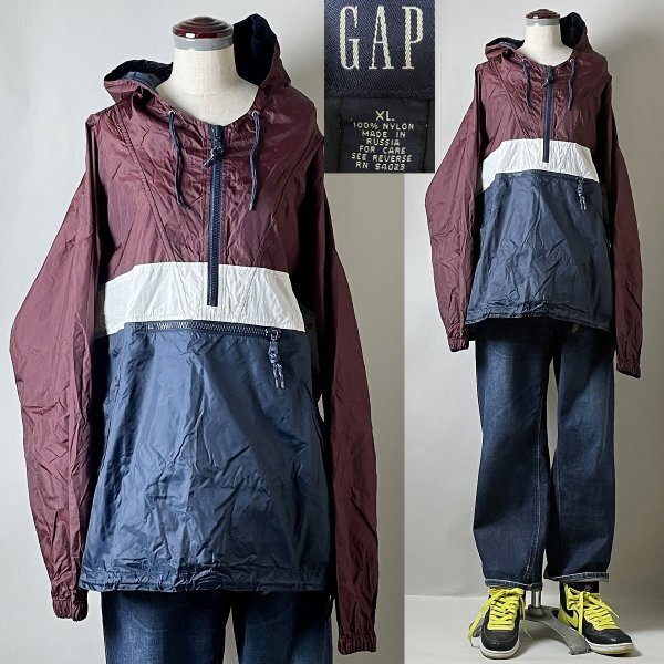 【ビンテージ ロシア製 紺タグ】90s OLD GAP オールド ギャップ ナイロン アノラック パーカー ジャケット プルオーバー ジップアップ XL