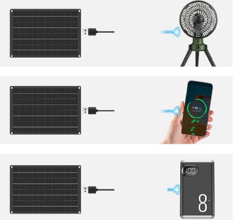 アウトドア ソーラーパネル 10W ソーラーチャージャー ポータブル電源用 ソーラー充電 太陽光パ ネル キャンプ 野外登山140g 25x18x1cm