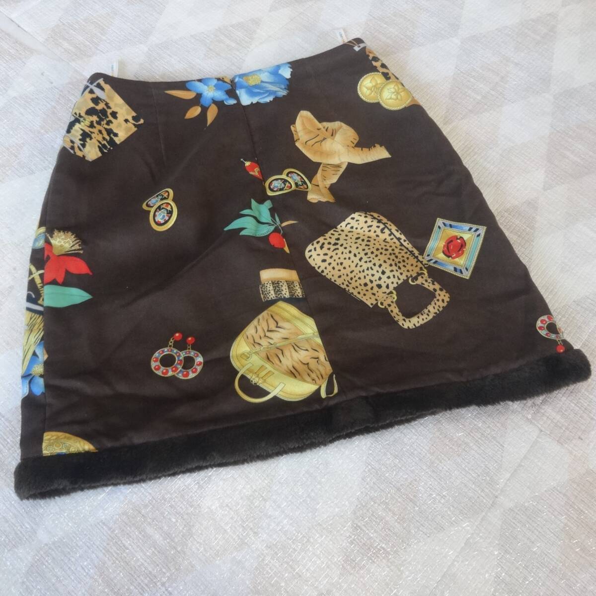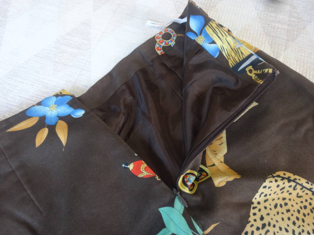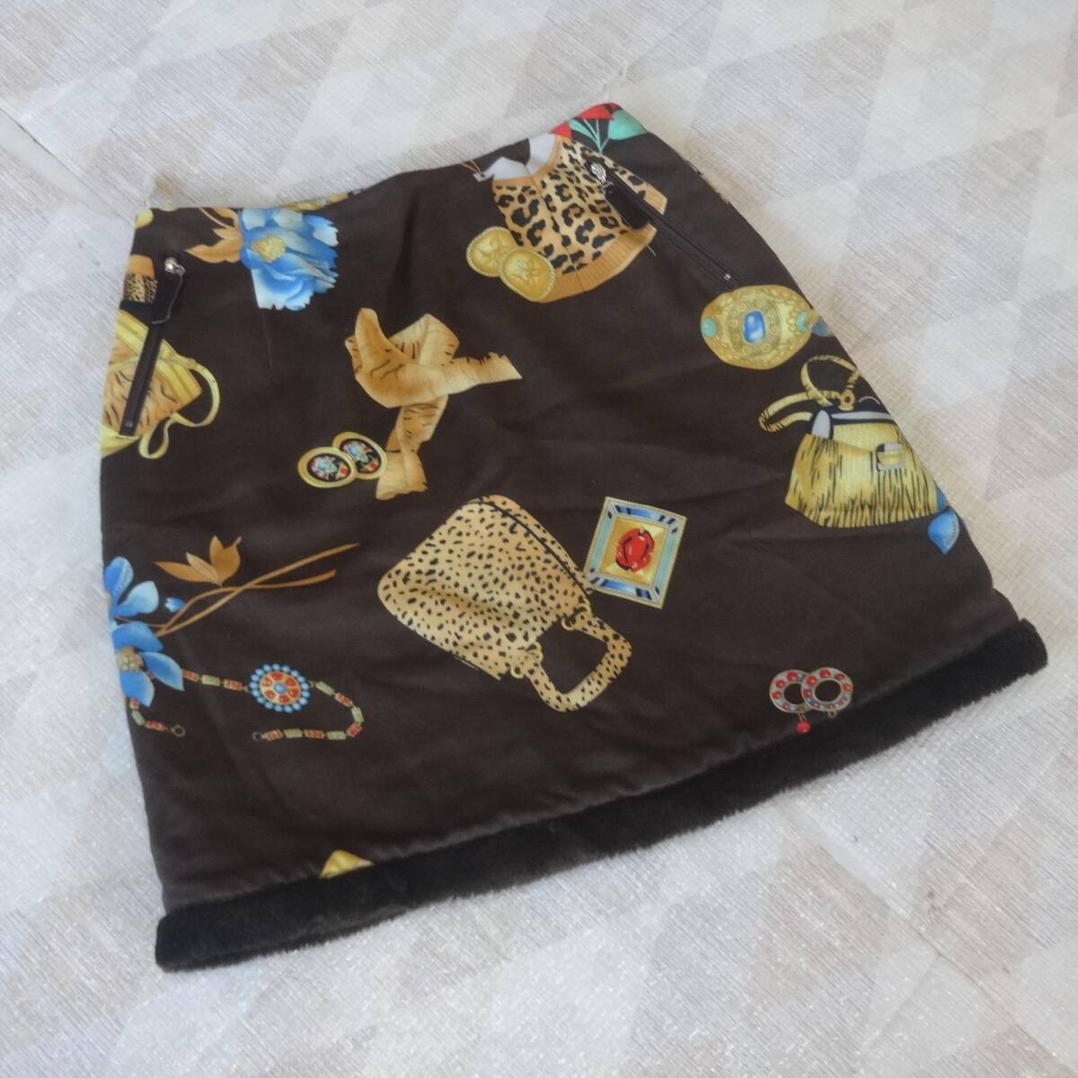 42-k25 極美品 レオナール フェイクファー付き スカート 70 ブラウン