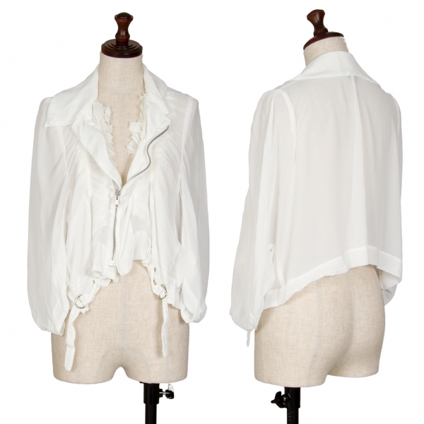 | コムデギャルソンCOMME des GARCONSフリル装飾シースルーショートドルマンブルゾン 白M |