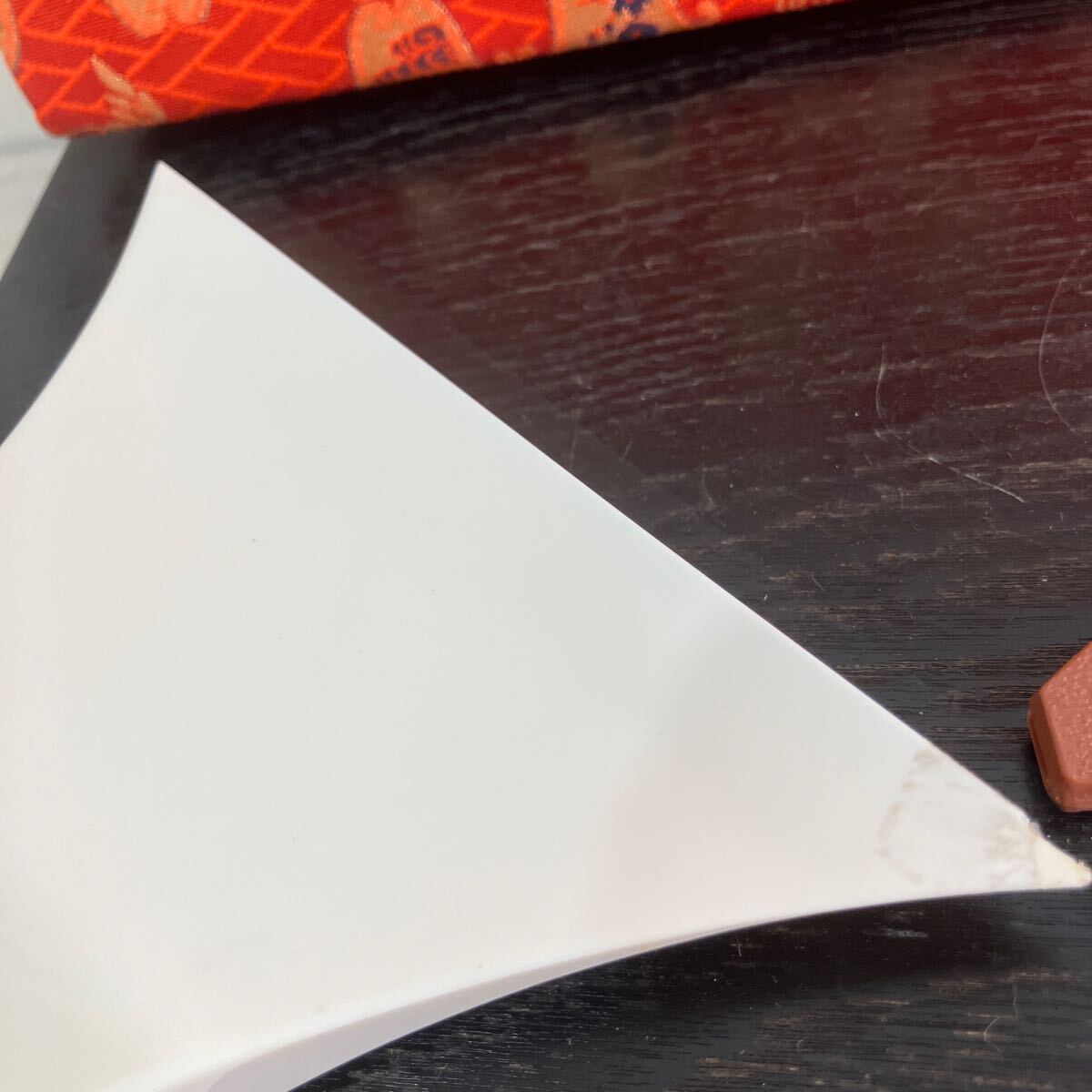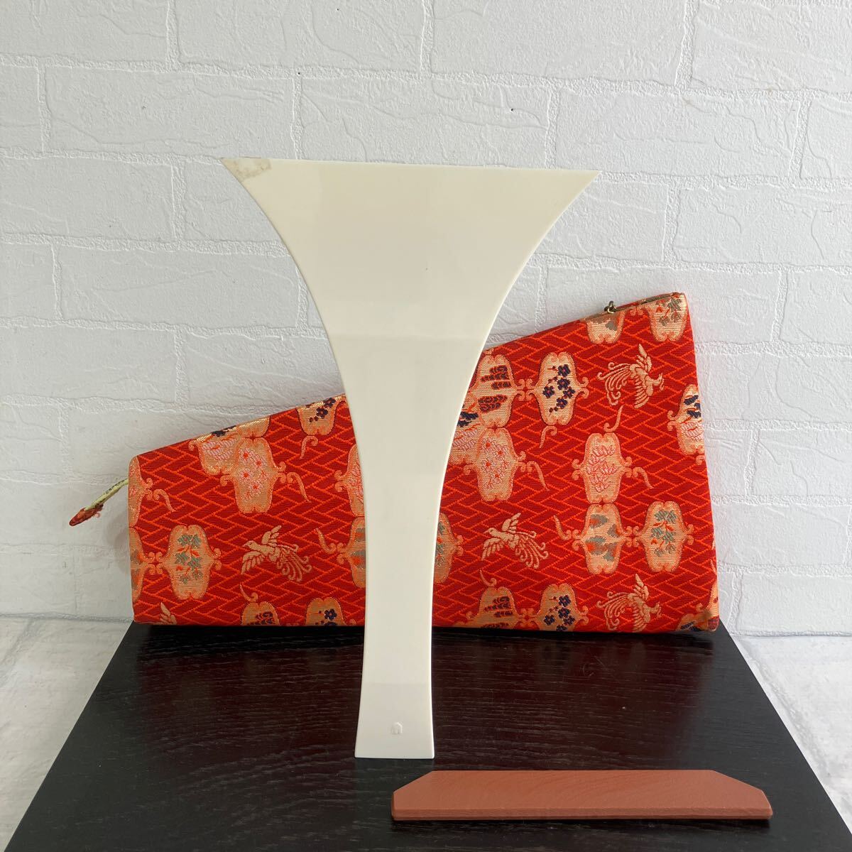 中古品 三味線 琵琶 撥 バチ 白象撥 地唄用 七五 プラスチック 欠けあり 開き13cm 丈23cm 才尻32×31cm 質量273g 撥袋付属 和楽器
