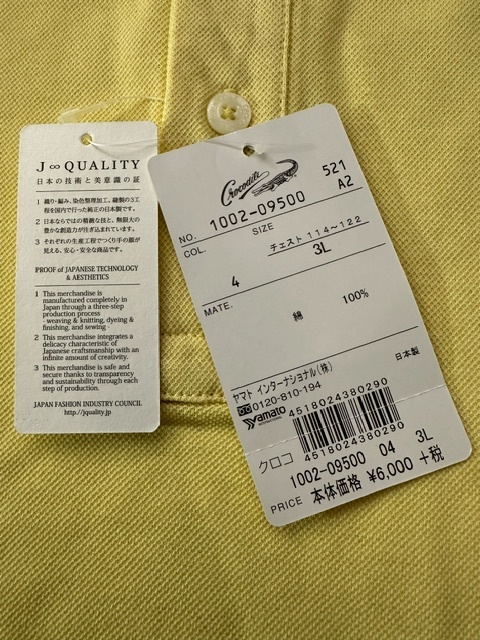特価 大寸 3L 黄色 メンズポロシャツ 新品未使用品 送料無料 日本製 綿 紳士 スポーツウエア XXL ポロシャツ 無地 半袖 ブランドTシャツ