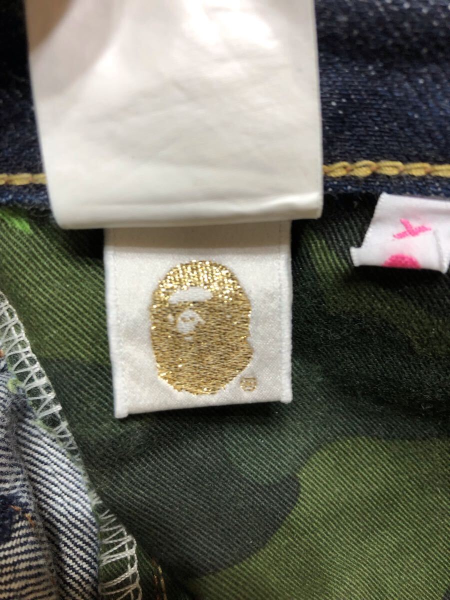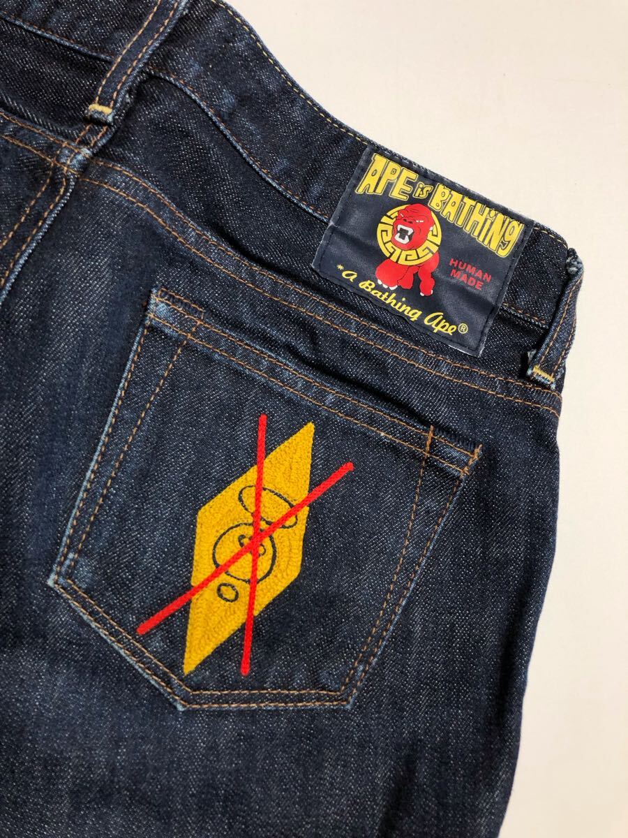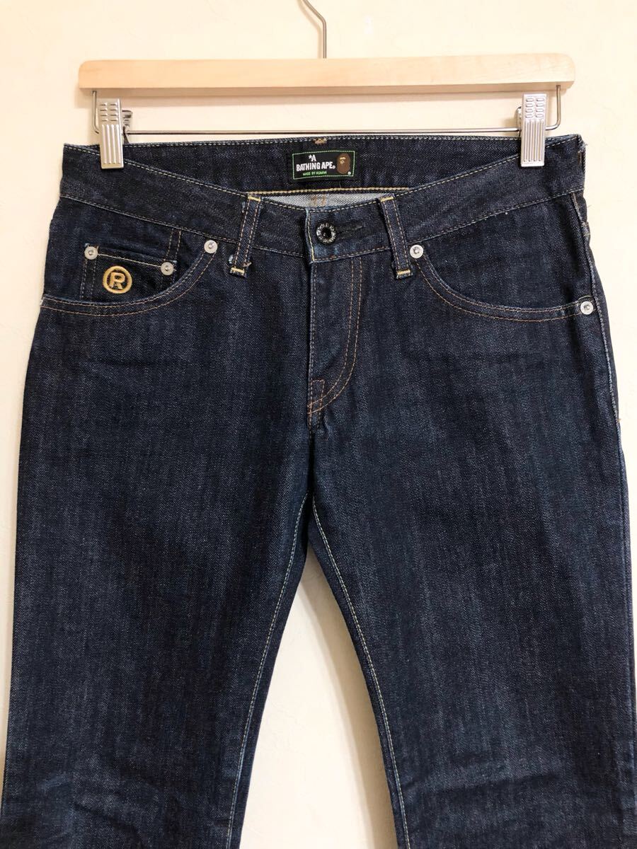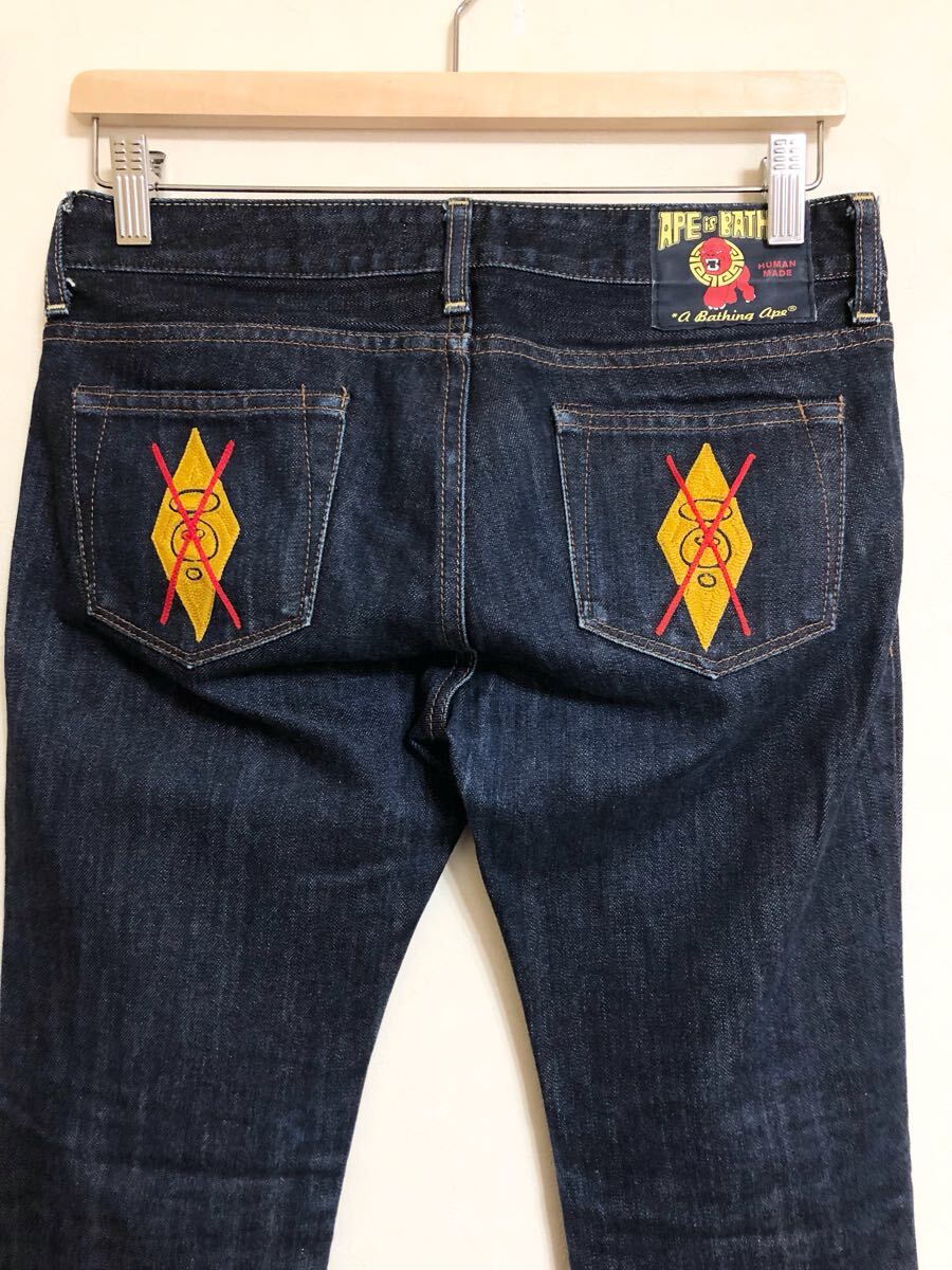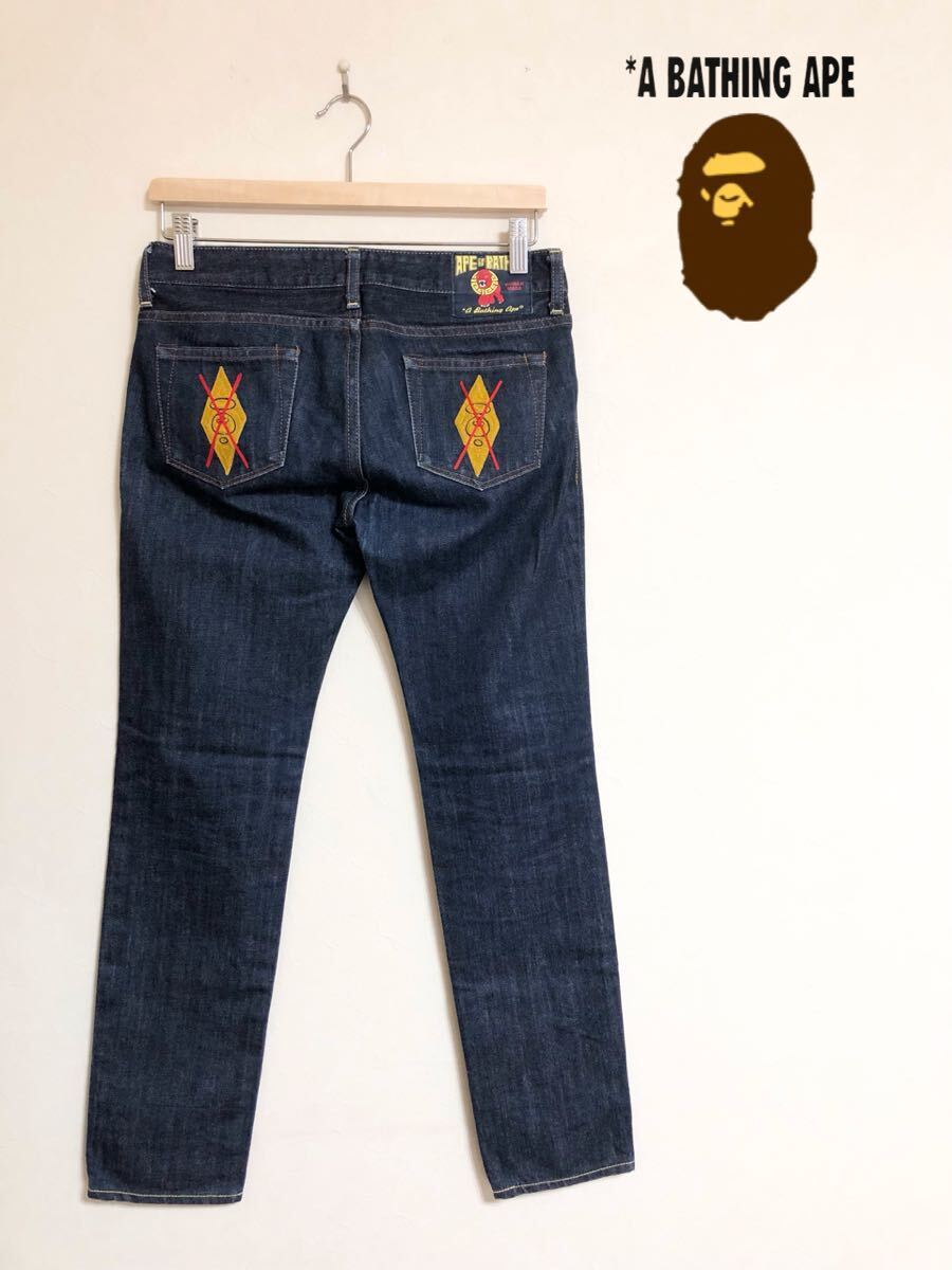 【品名】【美品】 A BATHING APE ア ベイシング エイプ レディース デニムパンツ ジーンズ 刺繍 サイズXXS インディゴブルー 日本製