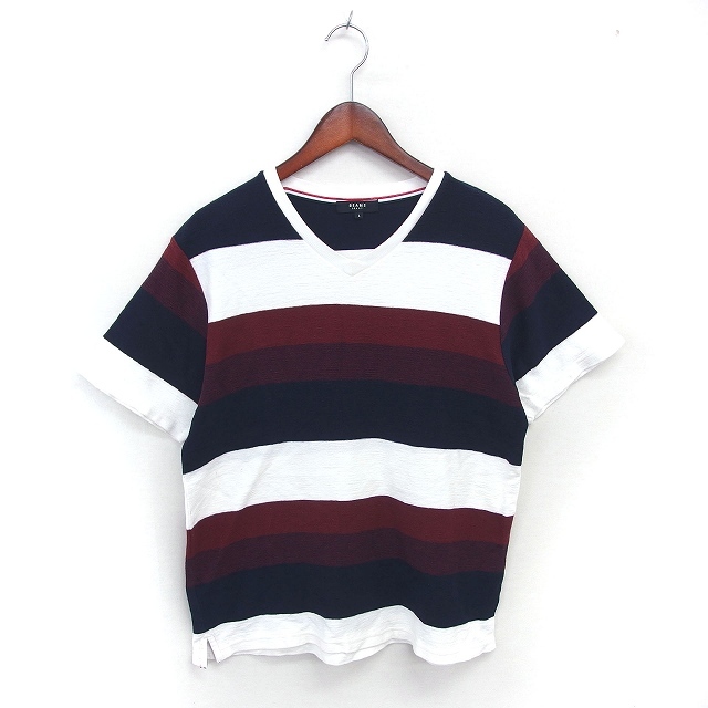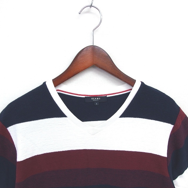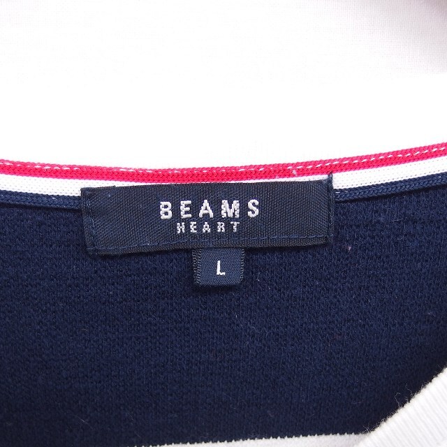 ビームスハート BEAMS HEART Tシャツ カットソー ボーダー Vネック 綿 コットン 半袖 L ホワイト ネイビー 白 紺 /TT メンズ