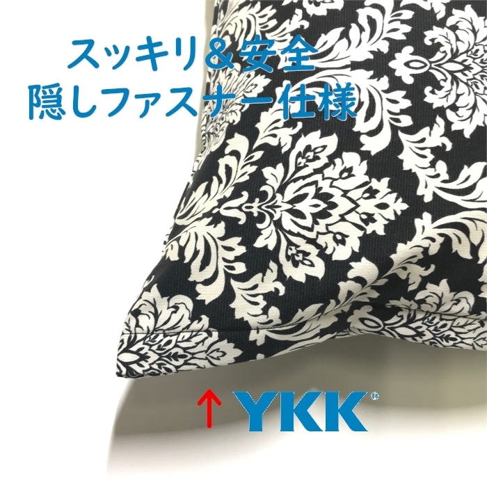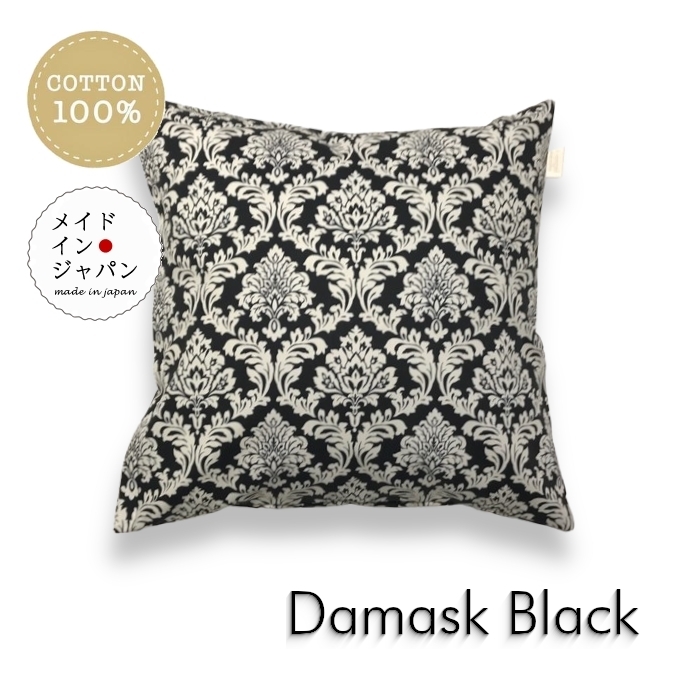 クッションカバー ダマスク ブラック 45×45cm 綿100%