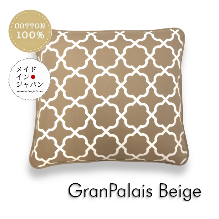 銘仙判座布団カバー グランパレス ベージュ モロッカン柄 ざぶとんカバー 55×59cm 綿100%