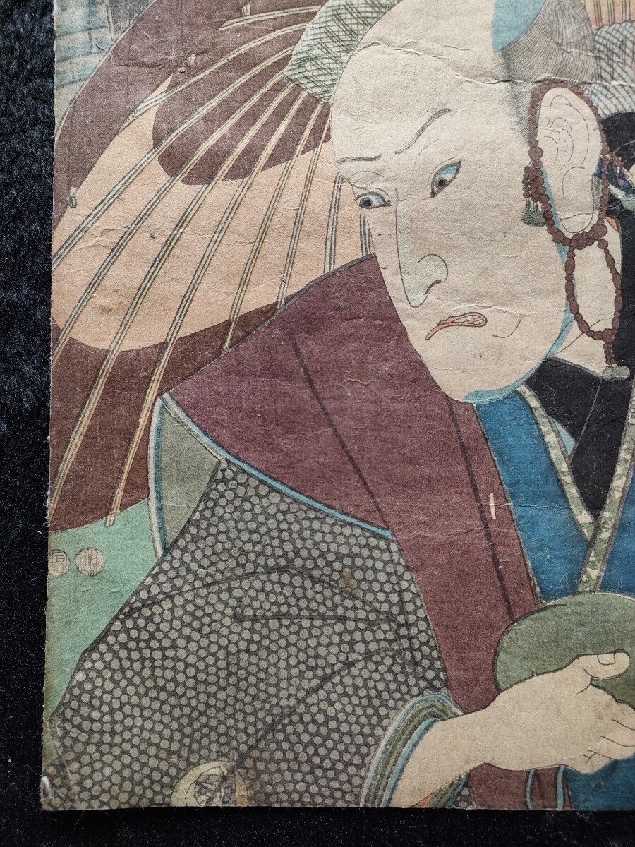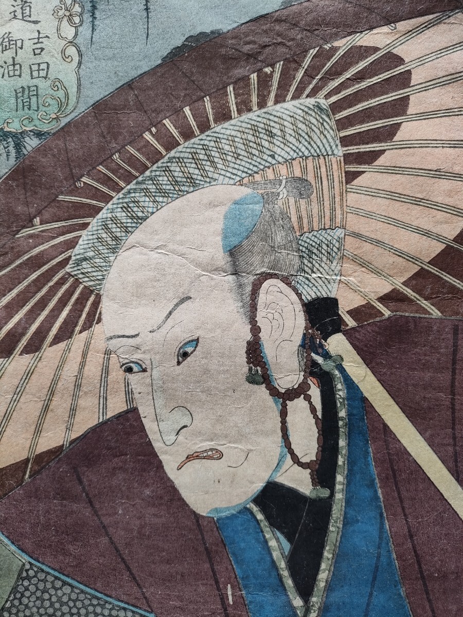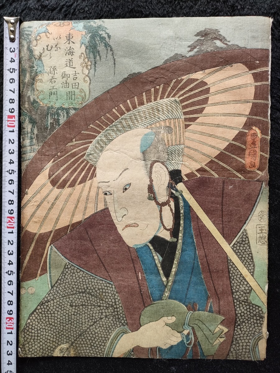 江戸期/真作 歌川豊国 役者東海道「東海道吉田御油間 いなむら 孫右エ門」本物浮世絵木版画 役者絵 歌舞伎絵 芝居絵 錦絵 大判 裏打ち