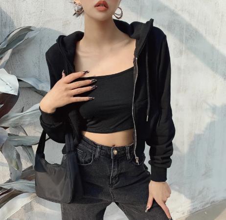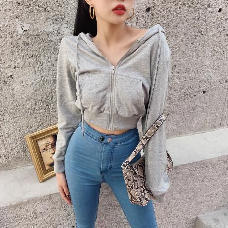 『人気のへそ出しショート丈フード付きパーカーは、カジュアルでおしゃれなスタイルを叶える魅力的な必須アイテム!』ショート丈のデザインは、ラフなスタイリングが好きな方や韓国トレンド感を取り入れたい方にぴったりです。