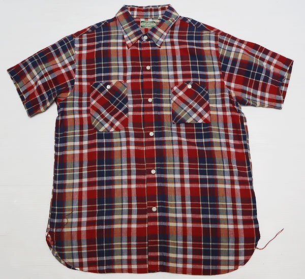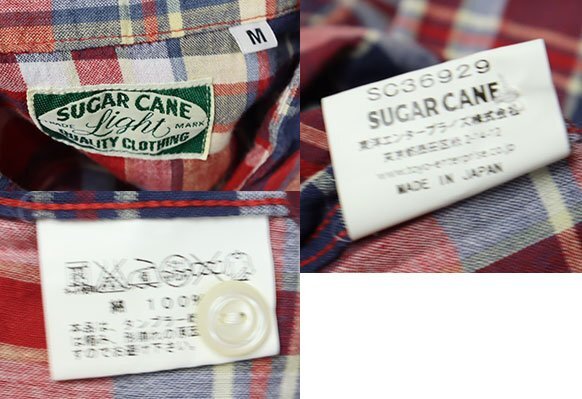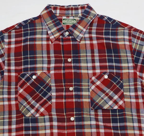 日本製SUGAR CANEの赤系x青系x白系他チェックシャツです。