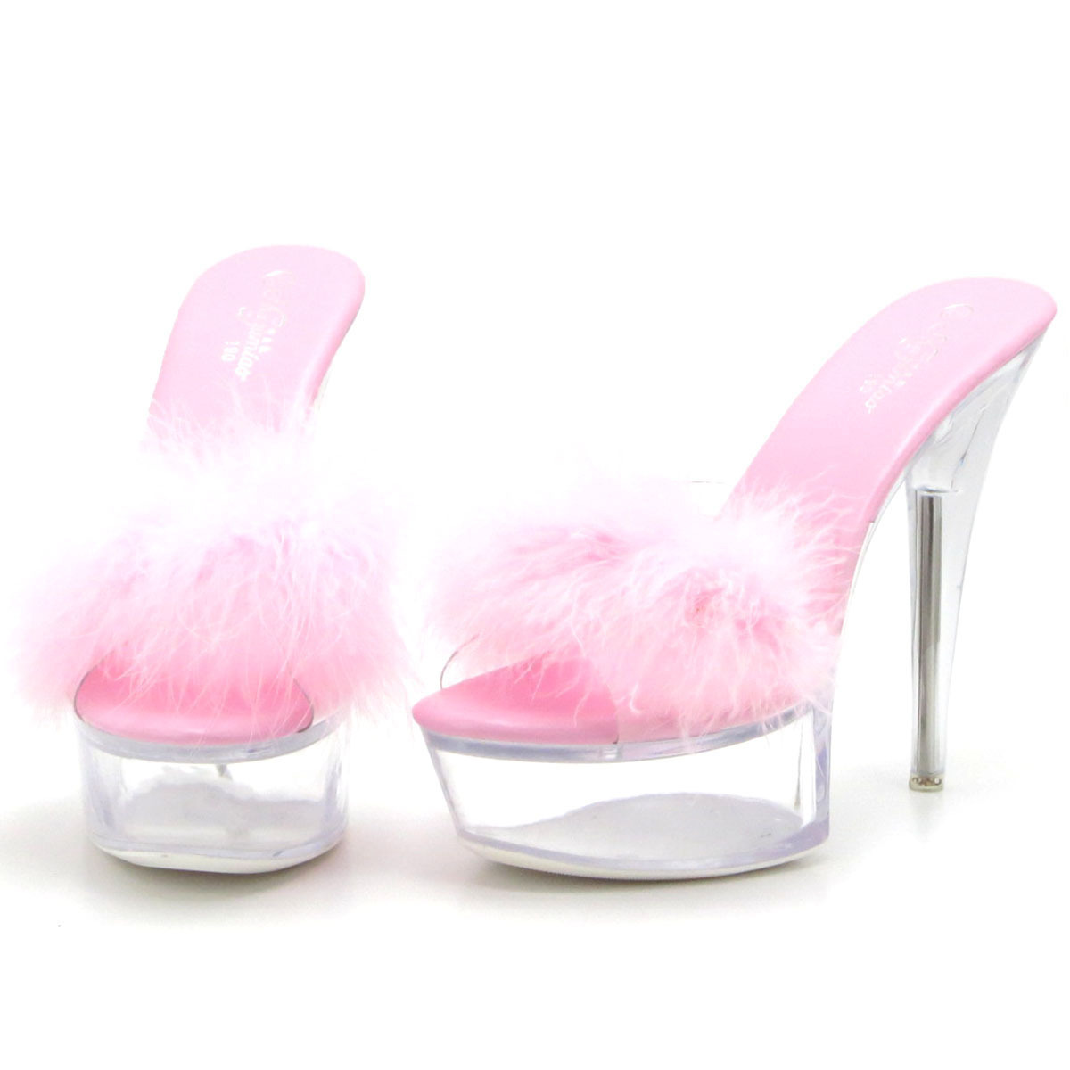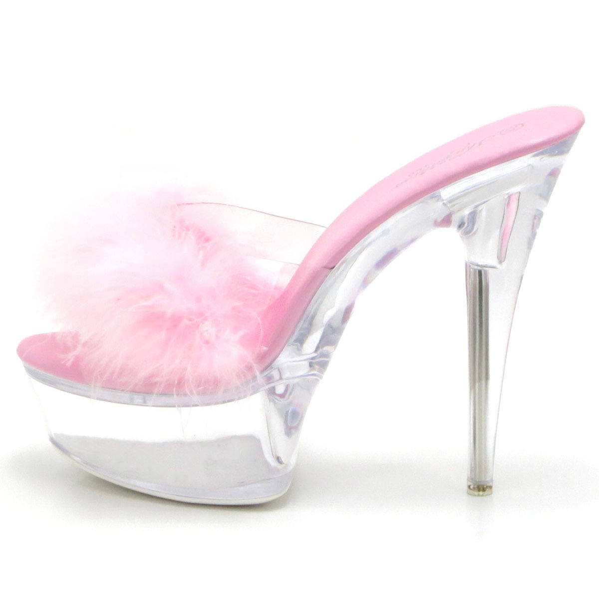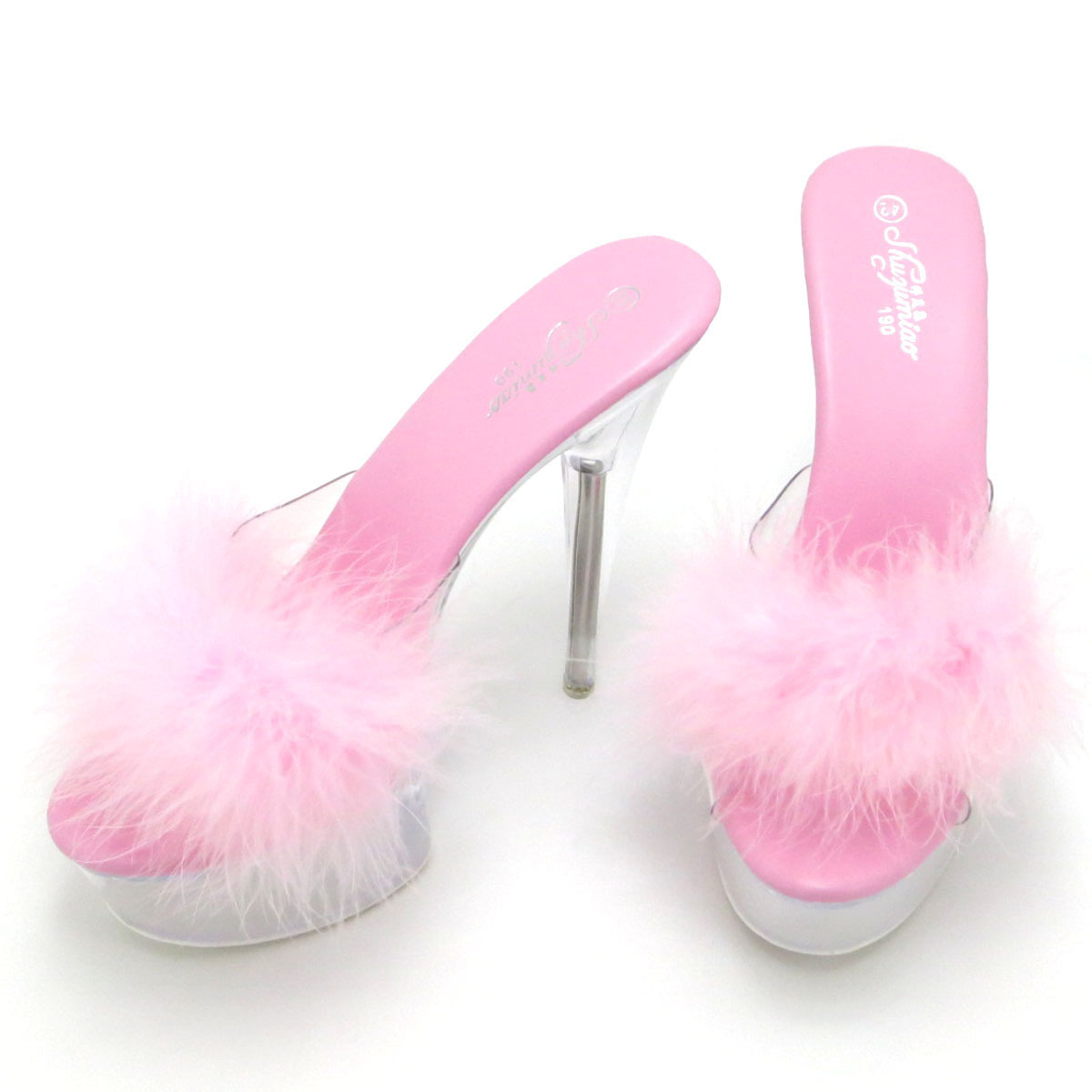 新品 大きいサイズ ミュール ピンク 26cm 132180-42 ファー付き クリアーソール 前厚底ストーム ハイヒール ミュールサンダル