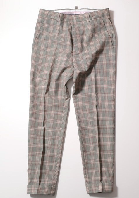 ディースクエアードのセットアップスーツになります。チェック柄のクラシカルな雰囲気の生地を使用しつつも、モダンに仕上げた一着。股上を深めにし、裾を絞ったサルエル風デザインは、ブランドの代表的なデザインです。使用することなく綺麗な状態で保管していました。ぜひお好きな方にお使いいただければ幸いです。
