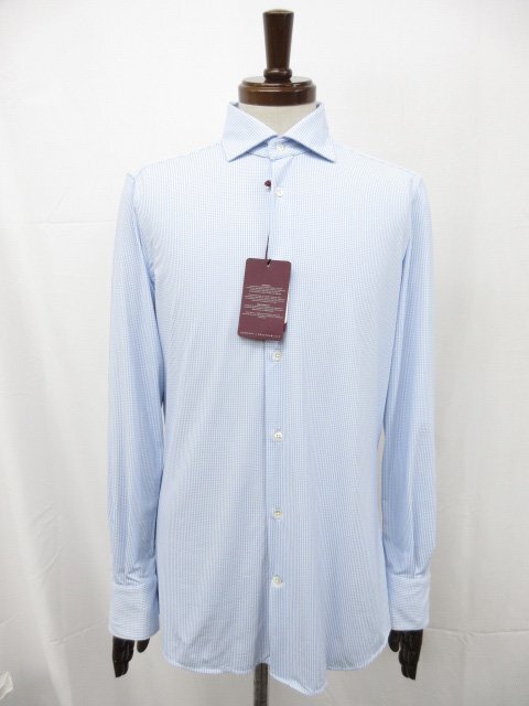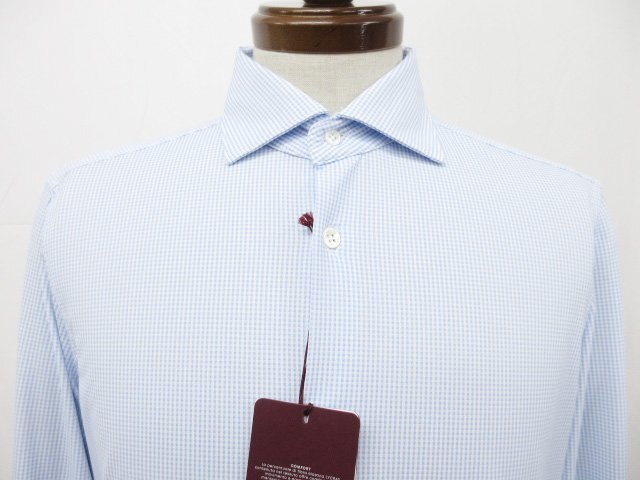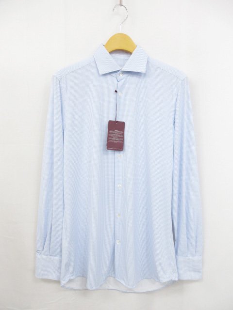 未使用【グランシャツ GLANSHIRT】5XFE01 G9103 800 定価46200円 ギンガムチェック柄 長袖シャツ (メンズ) size39 青系 ◯10GRS183◯