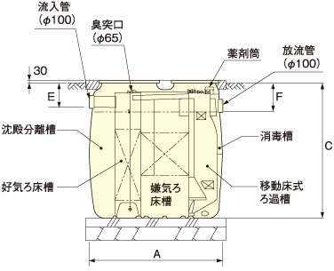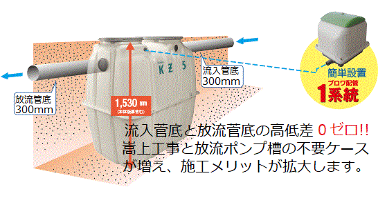 業界No.1コンパクト槽!流入管底と放流管底の高低差0ゼロ!!