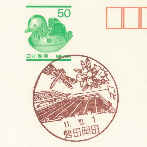 風景印☆初日☆静岡・磐田岡田・H11.10.1・トンボ