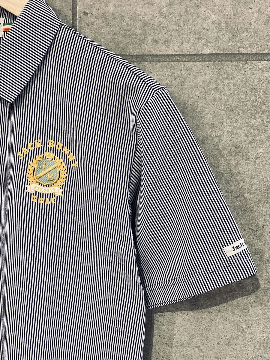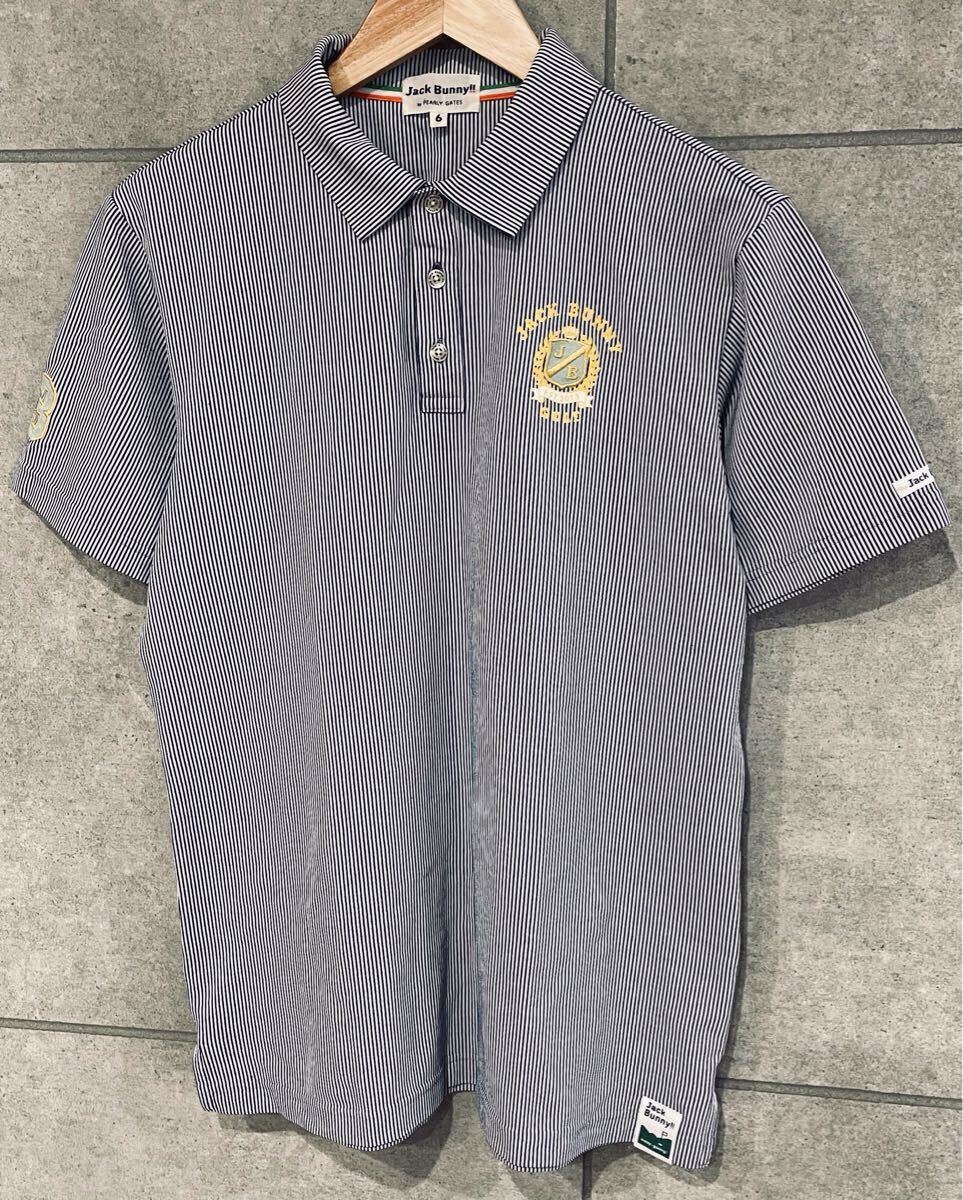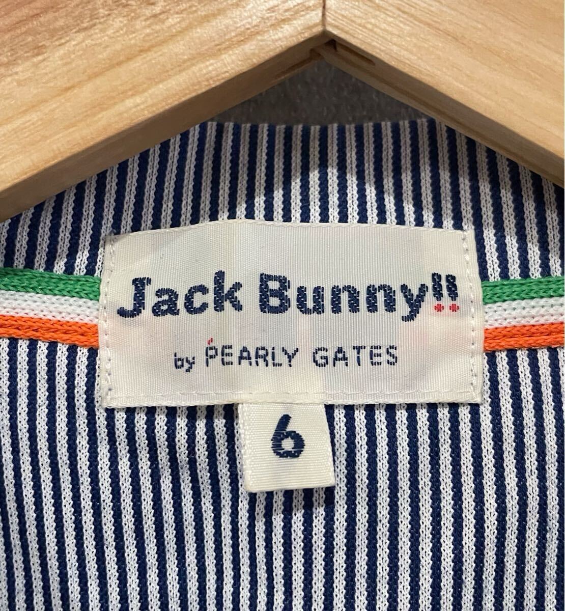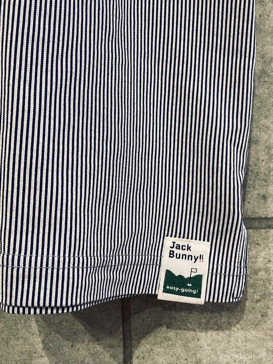 夏本番! Jack Bunny!! ジャックバニー パーリーゲイツ 吸汗速乾 半袖ポロシャツ ストライプ 白 ネイビー 6 レターパック可 ◯ 新規×