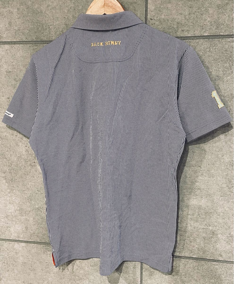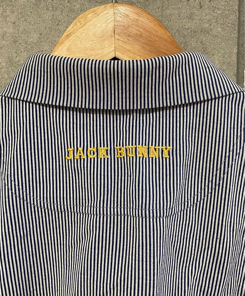 Jack Bunny!! ジャックバニー パーリーゲイツ 吸汗速乾 半袖ポロシャツ ストライプ 白 ネイビー