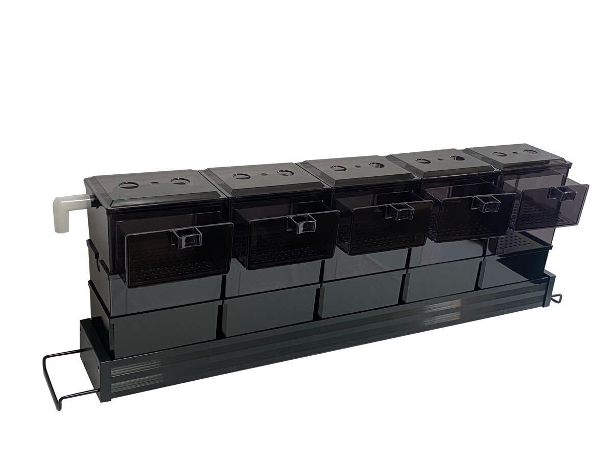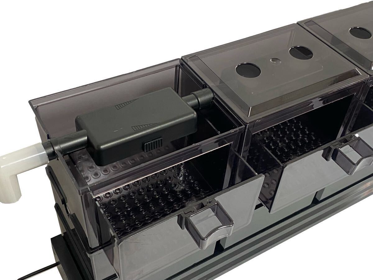 二階層全て引き出しタイプボックス設定し、濾過マットとろ材日常的掃除が非常に便利です。