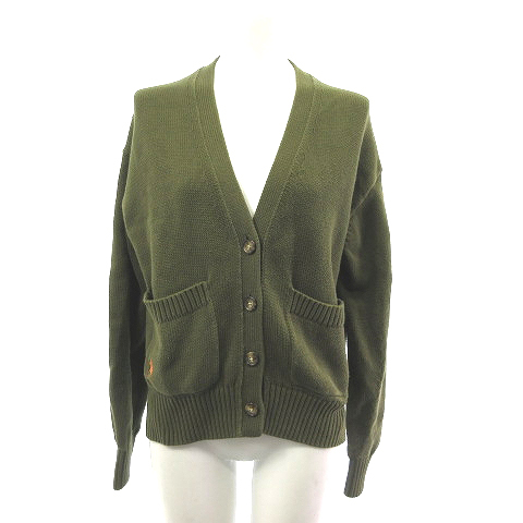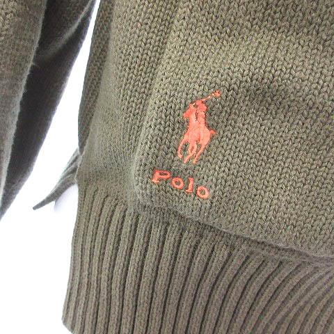 ポロ ラルフローレン POLO RALPH LAUREN カーディガン ロゴ刺繍 長袖 スリット カーキ XS レディース