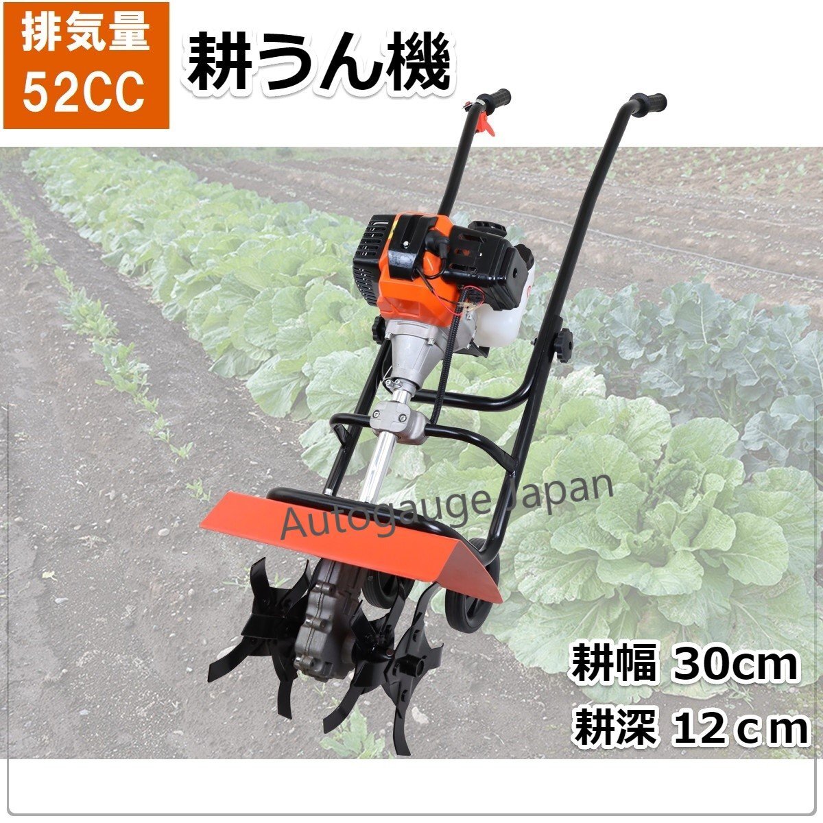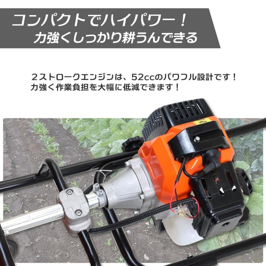 家庭用 52cc エンジン式 耕運機 耕幅30cm 耕うん機 耕し機 耕耘機 土かき機 家庭菜園に!★組み立て工具付き!