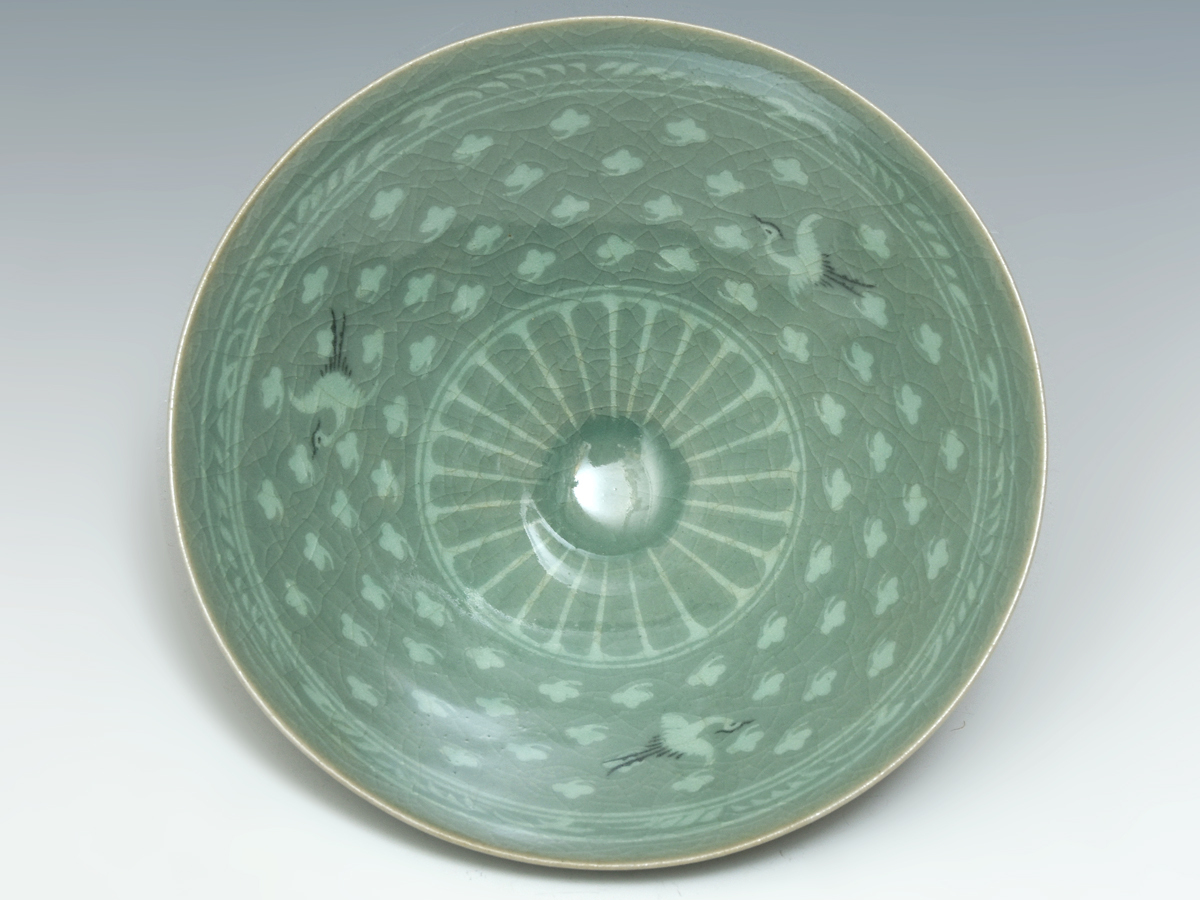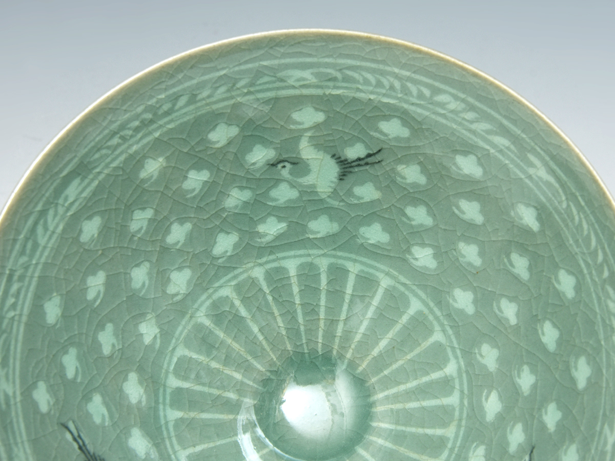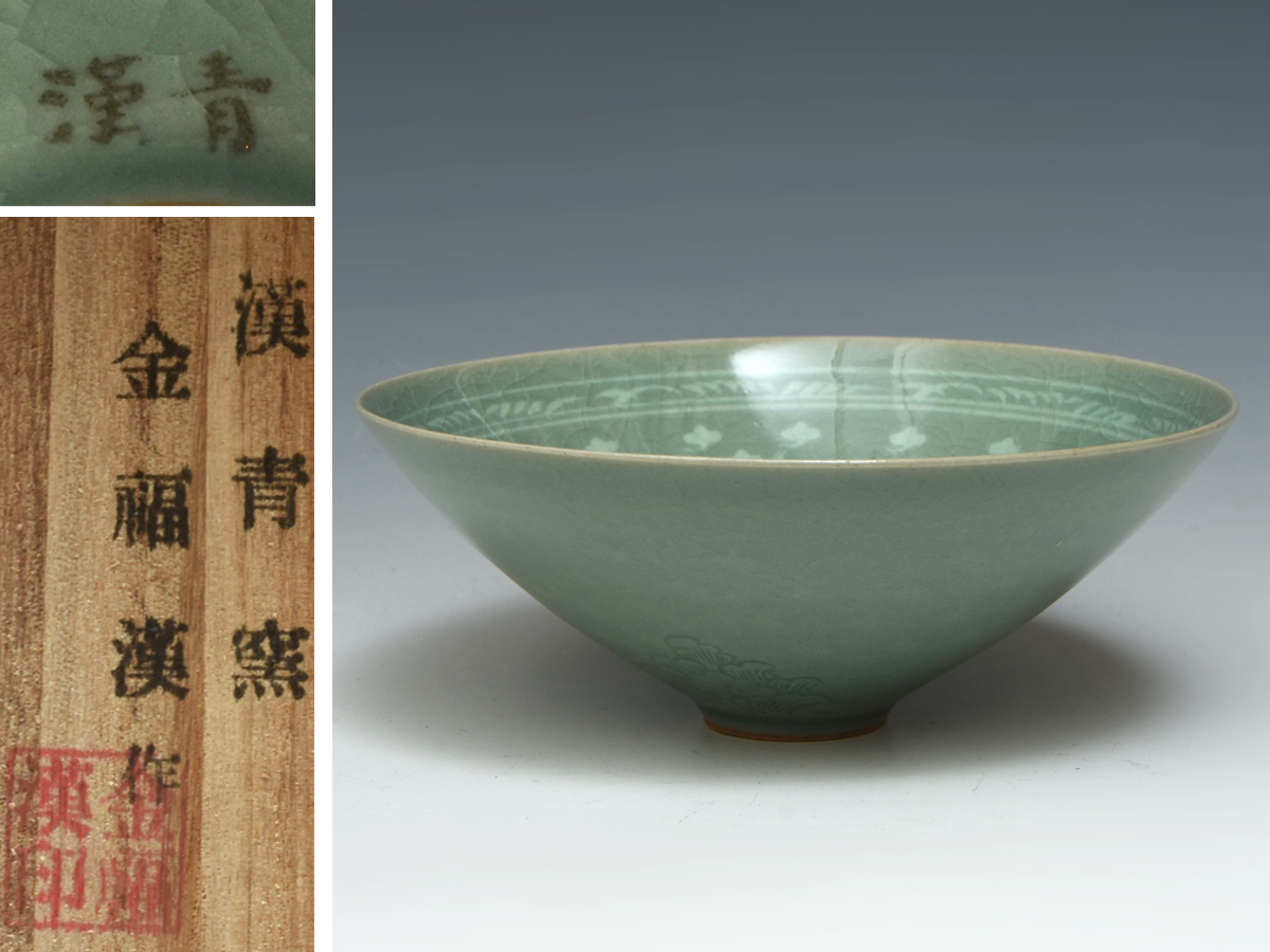 漢青窯 金福漢 (造) 高麗青磁 象嵌 雲鶴文 茶碗 共箱 しおり 茶道具 茶器 陶磁器 韓国美術 (検) 柳海剛 |